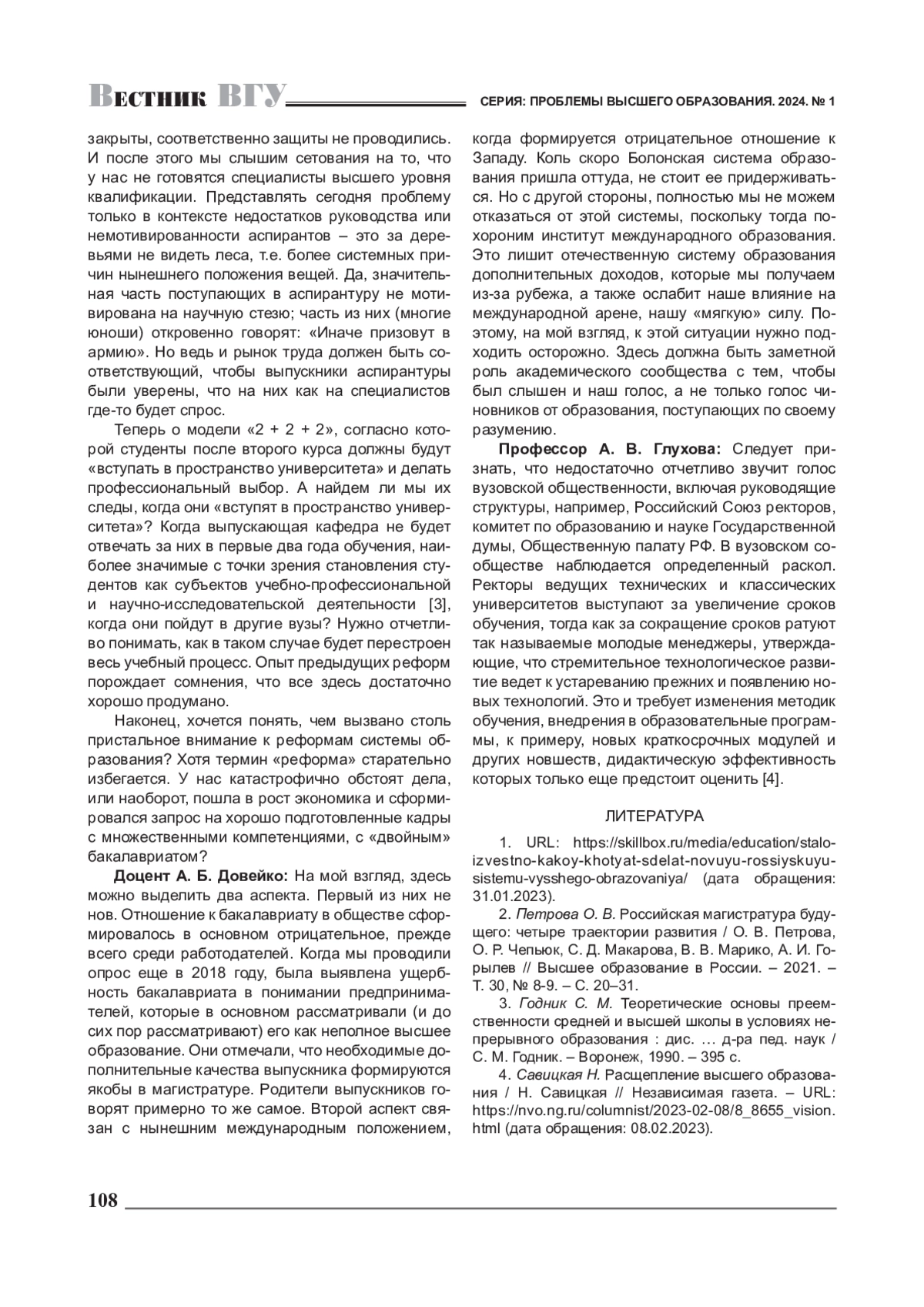 4. 	Савицкая Н. Расщепление высшего образования / Н. Савицкая // Независимая газета. - URL: https://nvo.ng.ru/columnist/2023-02-08/8_8655_vision.html (дата обращения: 08.02.2023).
