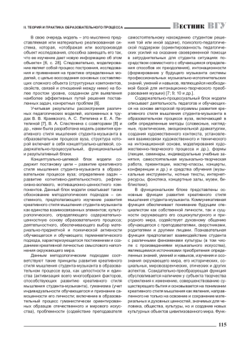 Авторы анализируют и раскрывают основные составляющие модели развития креативного стиля мышления студента-музыканта в образовательном процессе вуза с целью выявления эффективных путей достижения обучающимся творческого преобразования окружающей действительности в целом и музыкального искусства в частности.
