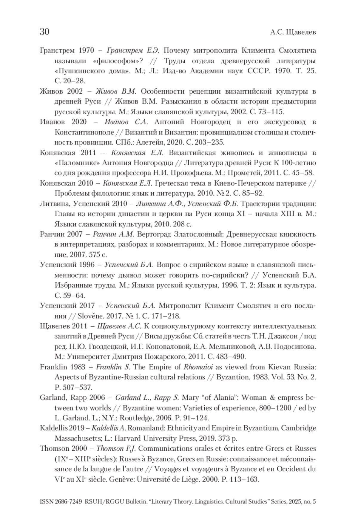 13. Franklin 1983 - Franklin S. The Empire of Rhomaioi as viewed from Kievan Russia: Aspects of Byzantine-Russian cultural relations // Byzantion. 1983. Vol. 53. No. 2. P. 507-537.