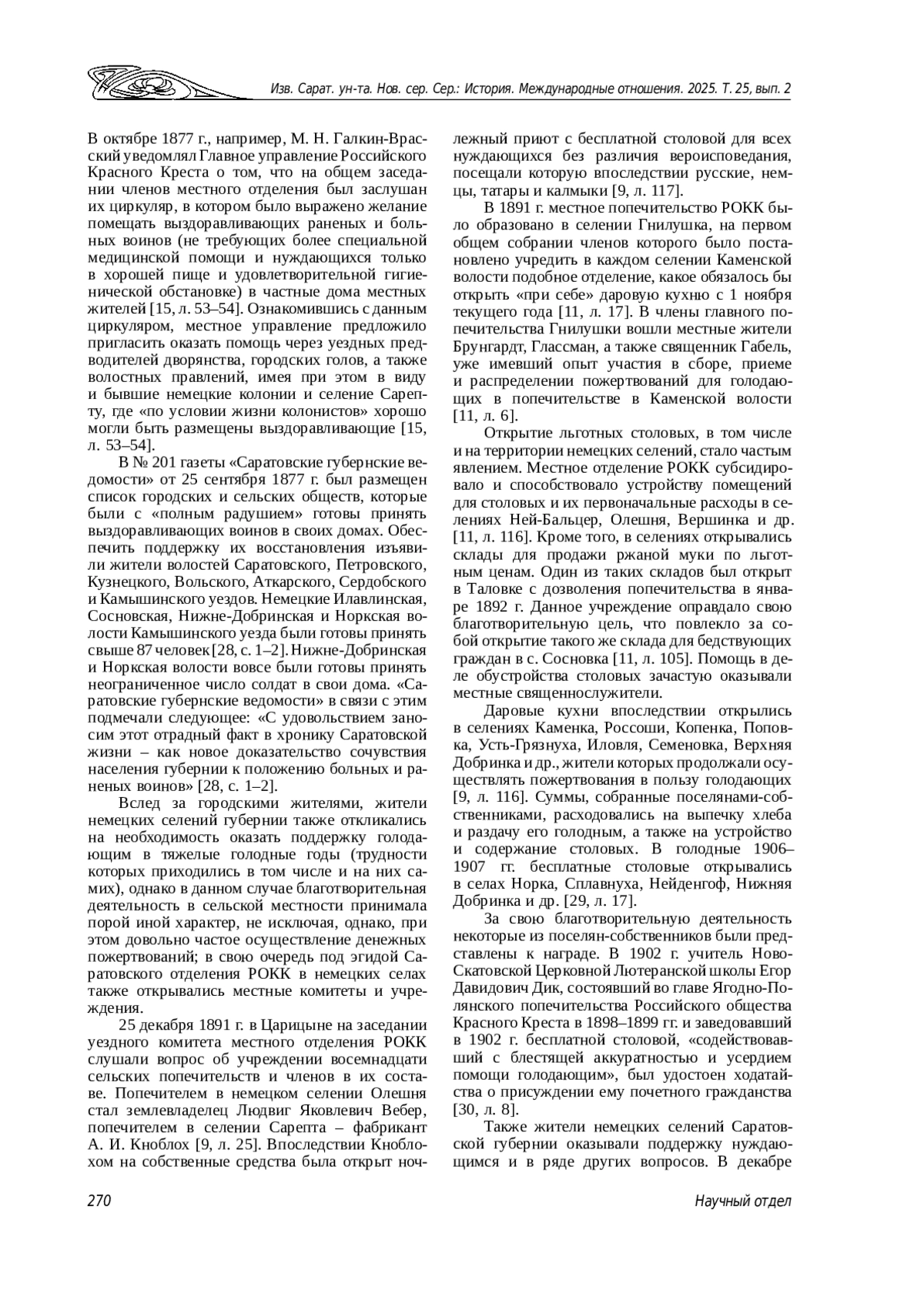 26. Слижевская М. Р. Образ саратовского немца-предпринимателя рубежа XIX-XX вв. в литературном наследии И. Я. Славина // Ежегодник Международной ассоциации исследователей истории и культуры российских немцев. 2023. № 1 (13). С. 14-22. DOI: 10.33466/2500-0063-2023-1(13)-14-22 EDN: WSXGND