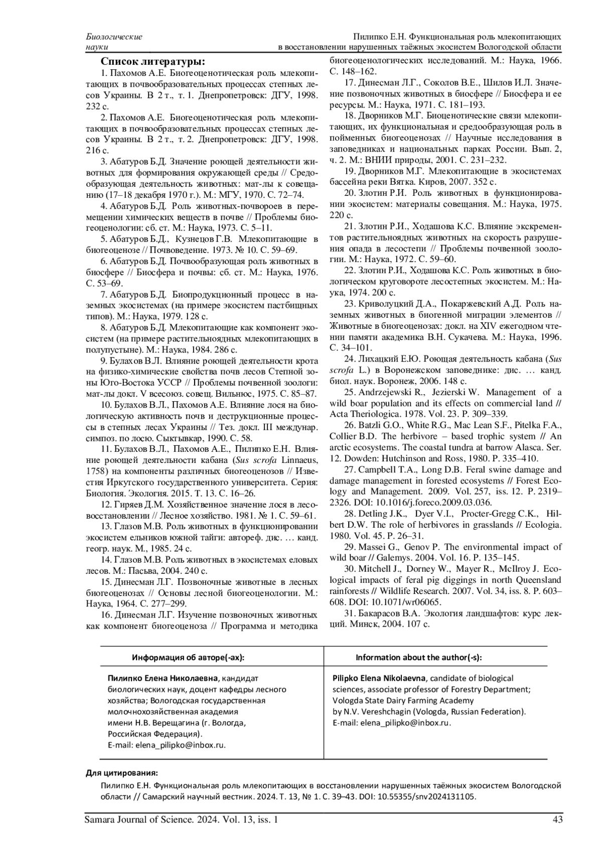 18. Дворников М.Г. Биоценотические связи млекопитающих, их функциональная и средообразующая роль в пойменных биогеоценозах // Научные исследования в заповедниках и национальных парках России. Вып. 2, ч. 2. М.: ВНИИ природы, 2001. С. 231-232.