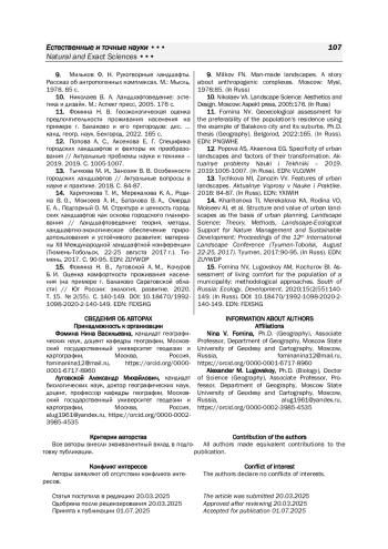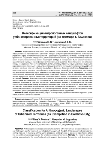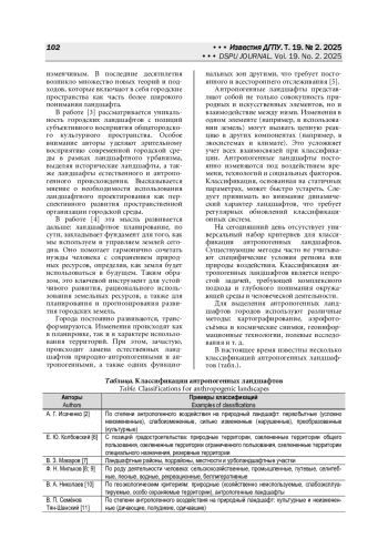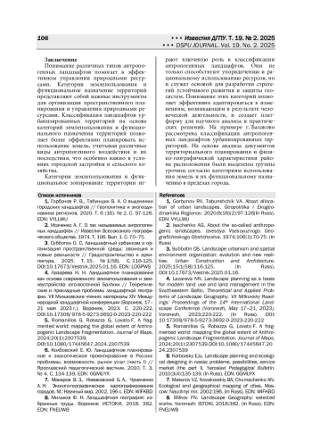 1. Горбунов Р. В., Табунщик В. А. О выделении городских ландшафтов // Геополитика и экогеодинамика регионов. 2020. Т. 6 (16). № 2. С. 97-126.