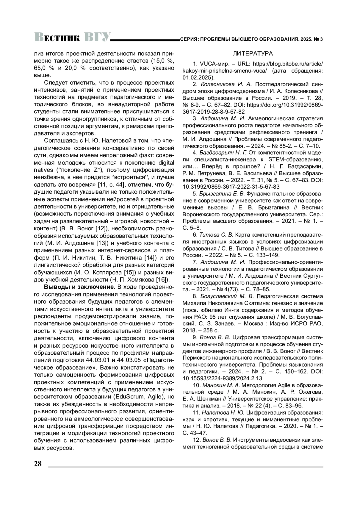 2. 	Колесникова И. А. Постпедагогический синдром эпохи цифромодернизма / И. А. Колесникова // Высшее образование в России. - 2019. - Т. 28, № 8-9. - С. 67-82. DOI: https://doi.org/10.31992/0869-3617-2019-28-8-9-67-82.
