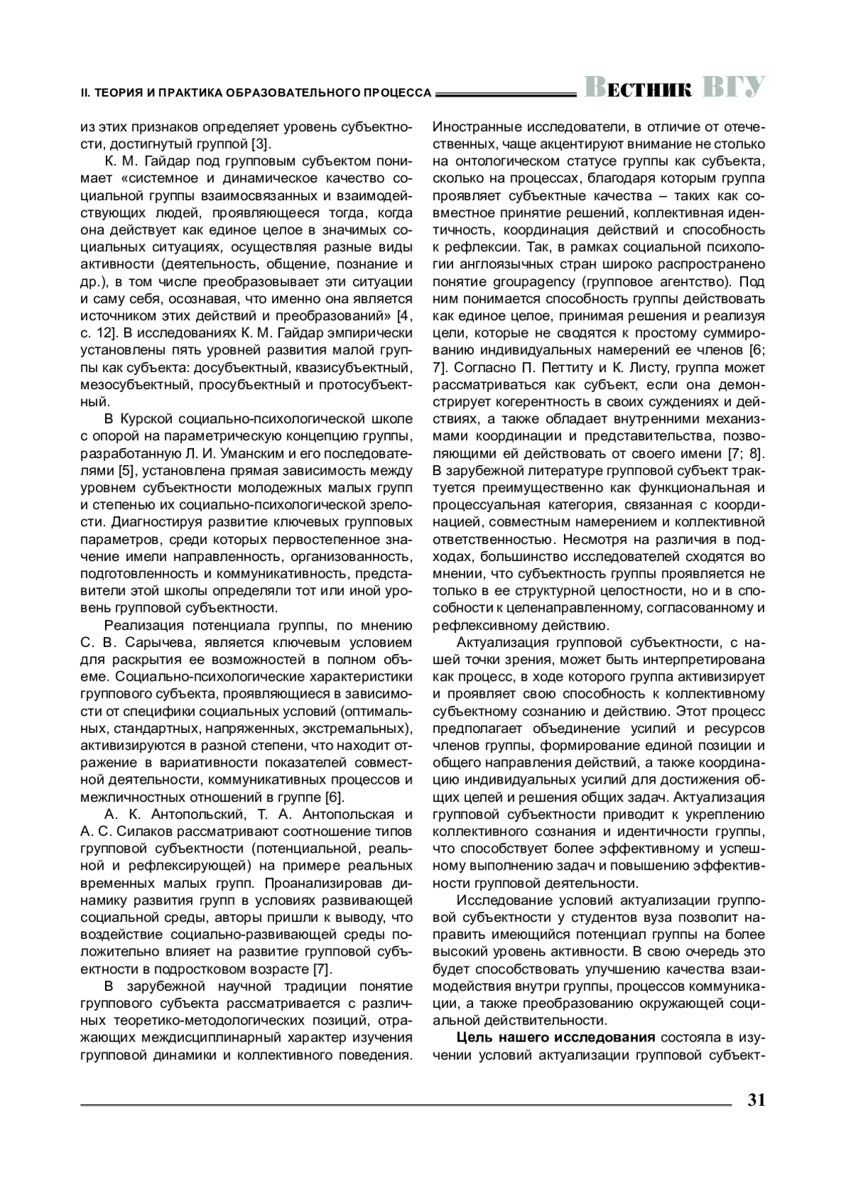 4. 	Гайдар К. М. Проблема развития группового субъекта / К. М. Гайдар // Российский психол. журн. - 2008. - Т. 5, № 3. - С. 9-24.
