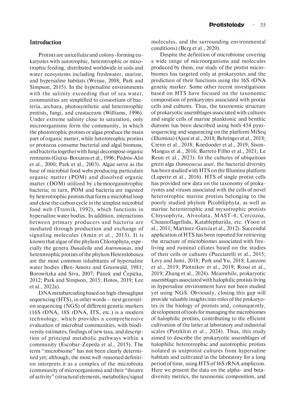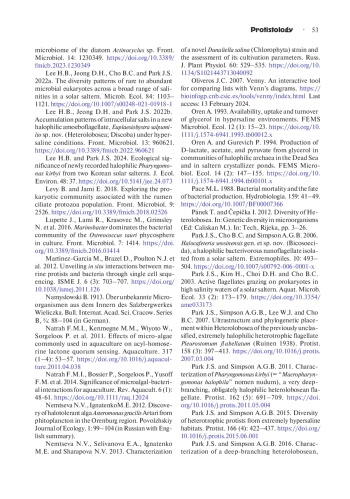 58. 	Park J.S. and Simpson A.G.B. 2015. Diversity of heterotrophic protists from extremely hypersaline habitats. Protist. 166 (4): 422-437. DOI: 10.1016/j.protis.2015.06.001