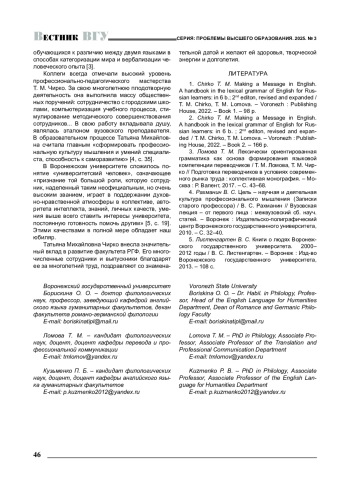 1. Chirko T. M. Making a Message in English. A handbook in the lexical grammar of English for Russian learners: in 6 b.; 2nd editon, revised and expanded / T. M. Chirko, T. M. Lomova. - Voronezh : Publishing House, 2022. - Book 1. - 98 p.