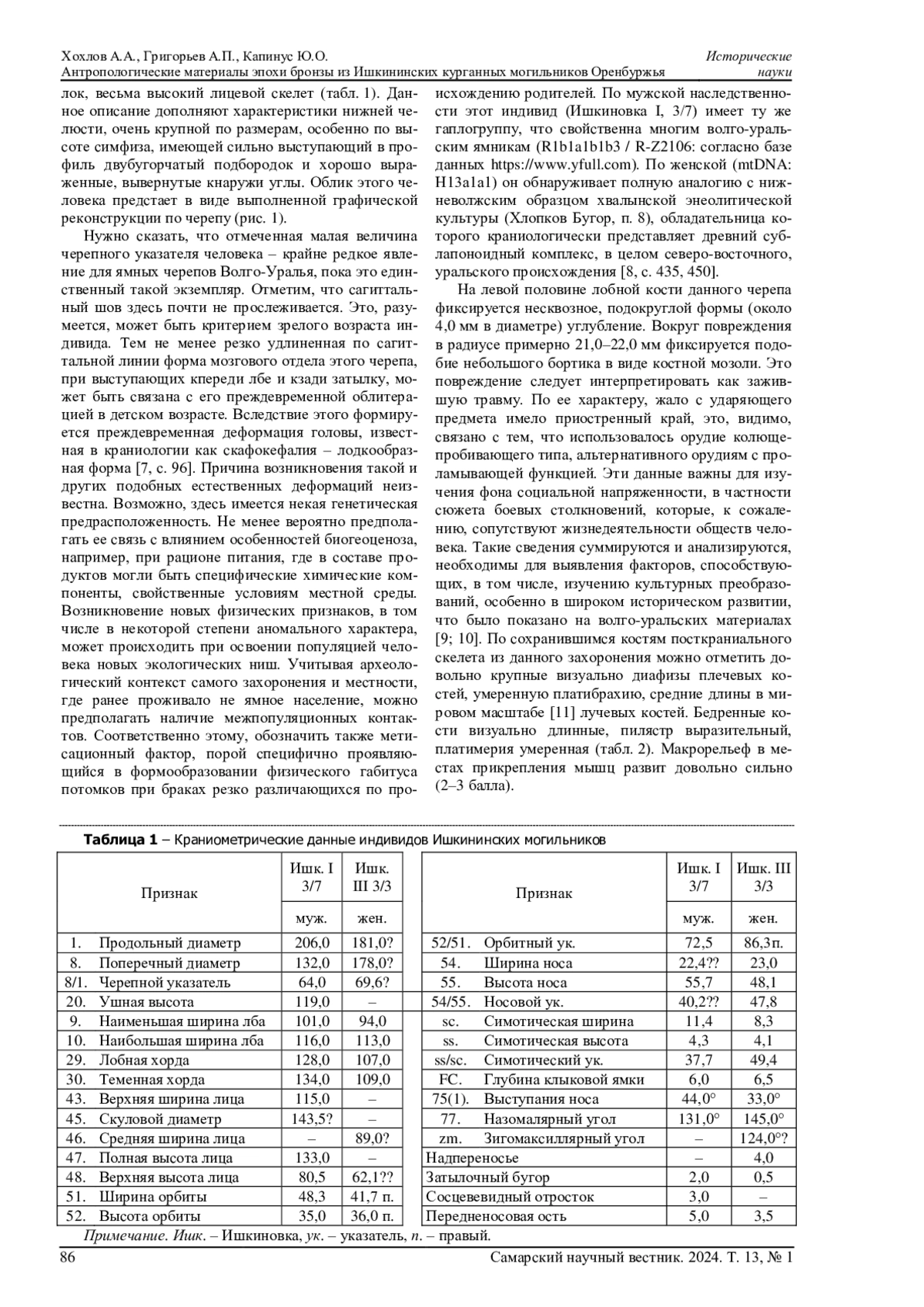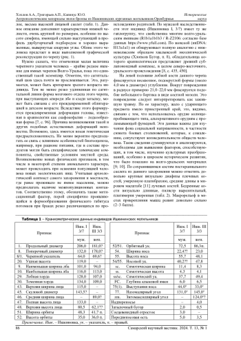 6. 	Хохлов А.А., Китов Е.П. К антропологии раннего этапа бронзового века Западного Казахстана // Вестник археологии, антропологии и этнографии. 2012. № 1. С. 64-71. EDN: OXPRWX