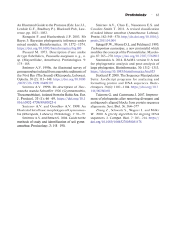 38. Smirnov A.V., Chao E., Nassonova E.S. and Cavalier-Smith T. 2011. A revised classification of naked lobose amoebae (Amoebozoa: Lobosa). Protist. 162: 545-570. DOI: 10.1016/j.protis.2011.04.004