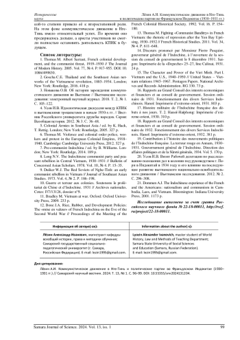 13. Thomas M. Fighting “Communist Banditry” in French Vietnam: the rhetoric of repression after the Yen Bay Uprising, 1930-1932 // French Historical Studies. 2011. Vol. 34, № 4. P. 611-648.