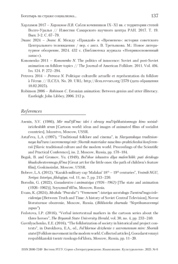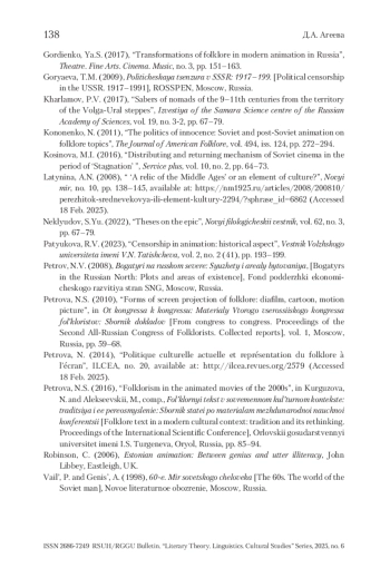 20. Kononenko 2011 - Kononenko N. The politics of innocence: Soviet and post-Soviet animation on folklore topics // The Journal of American Folklore. 2011. Vol. 494. Iss. 124. P. 272-294.