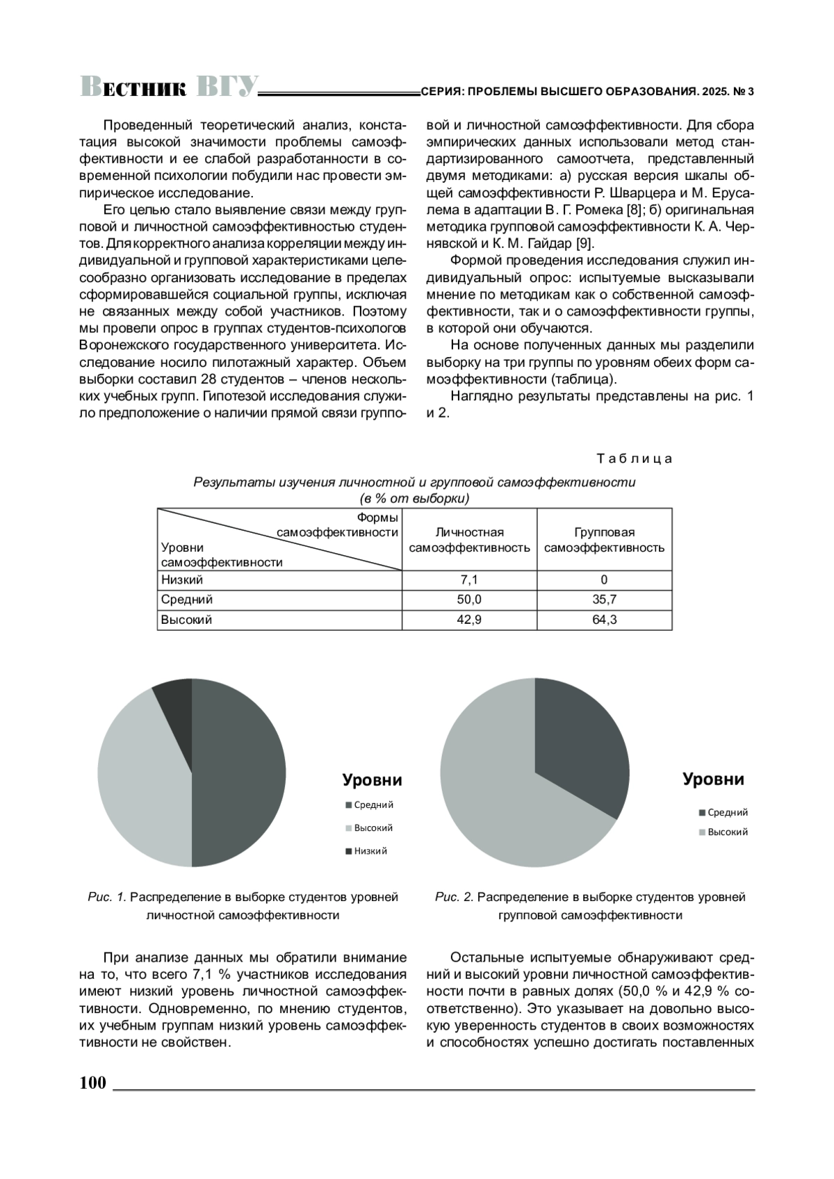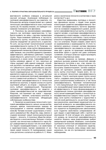 В статье раскрываются основные направления исследования групповой самоэффективности, необходимые для формирования целостных научных представлений о феномене самоэффективности: содержательное различение понятий групповой и личностной самоэффективности; выделение основных групповых параметров, связанных с самоэффективностью группы; уточнение характера соотношения групповой и личностной самоэффективности. Приведены результаты пилотажного эмпирического исследования связи между этими формами самоэффективности.
