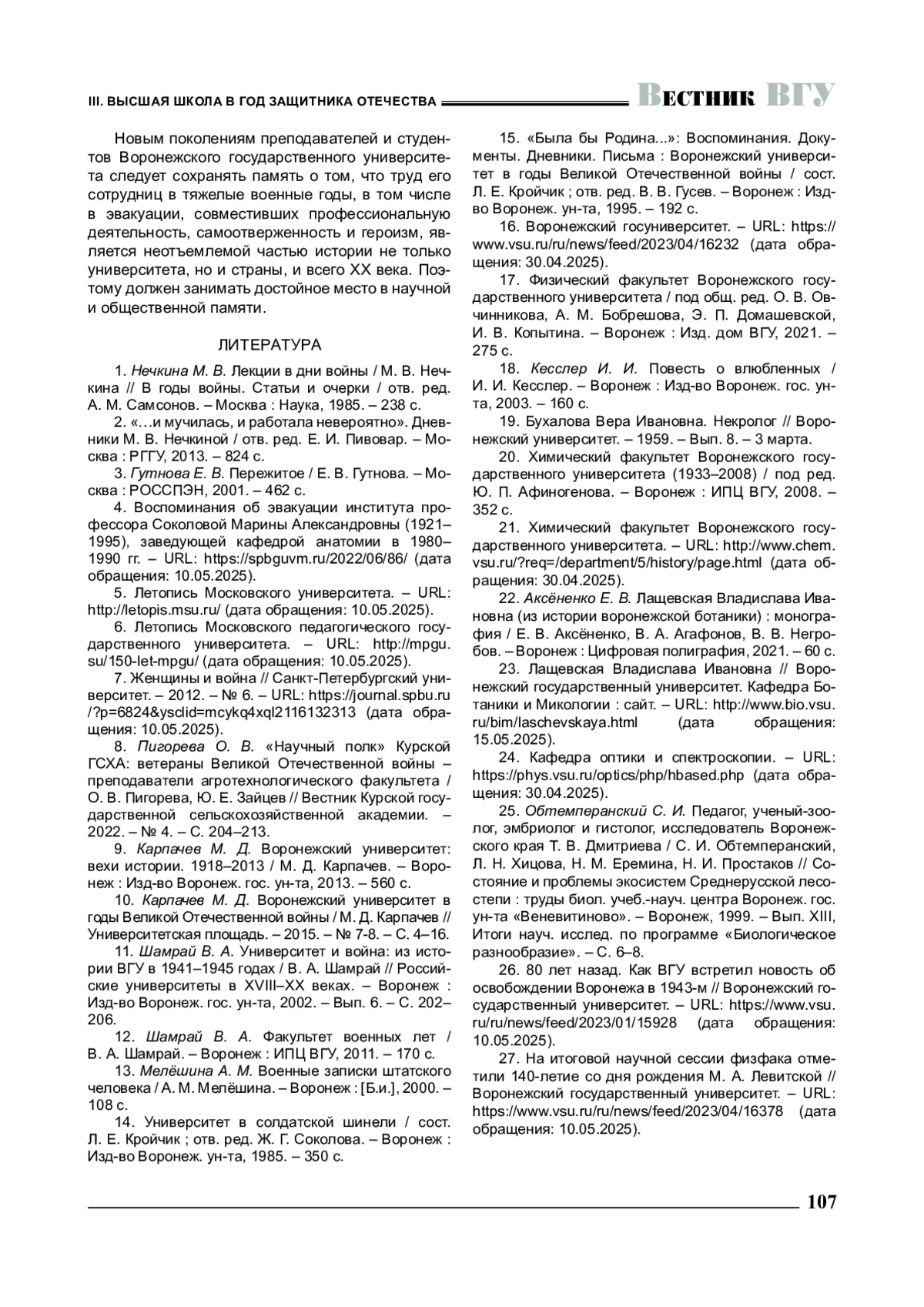 26. 80 лет назад. Как ВГУ встретил новость об освобождении Воронежа в 1943-м // Воронежский государственный университет. - URL: https://www.vsu.ru/ru/news/feed/2023/01/15928 (дата обращения: 10.05.2025).