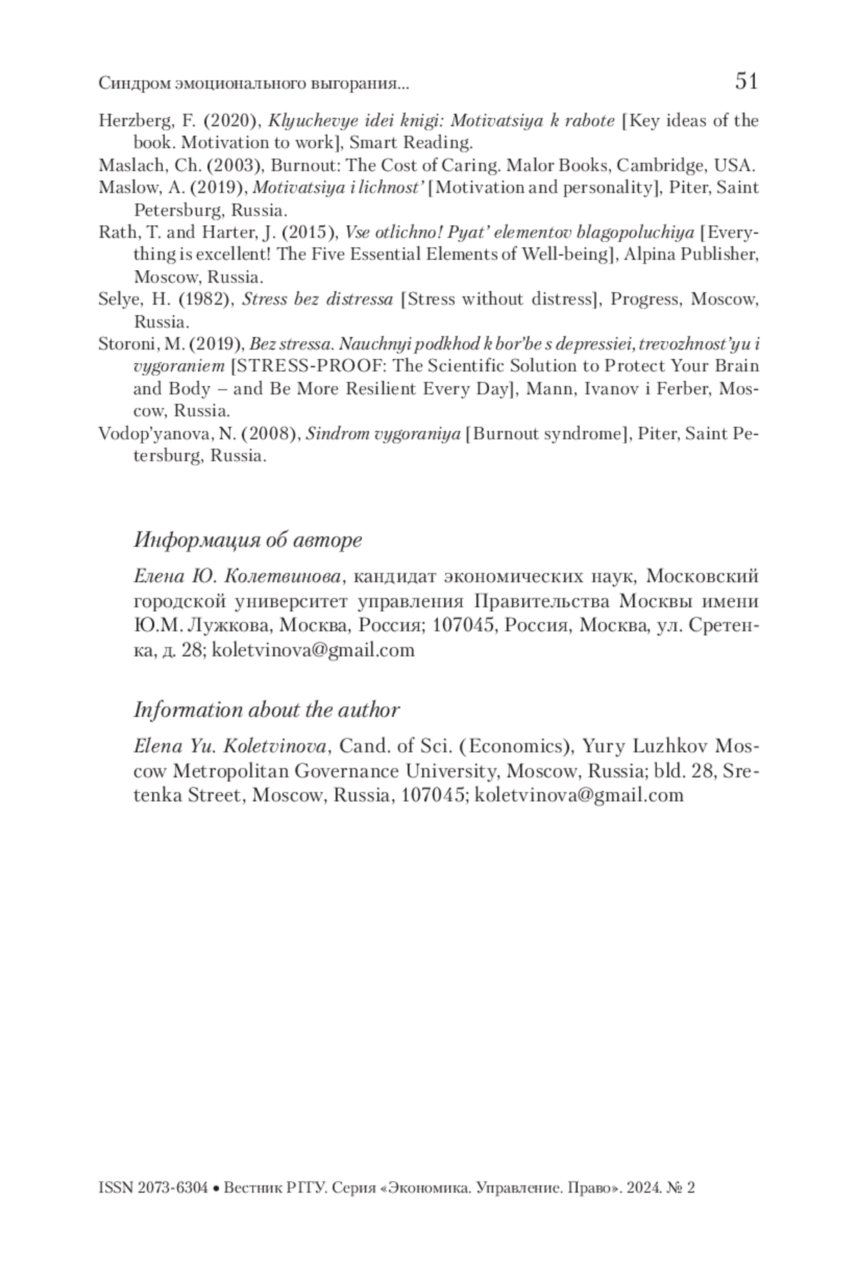 9. Maslach 2003 - Maslach С. Burnout: The Cost of Caring. MALOR BOOKS, Cambridge, 2003. 276 p.