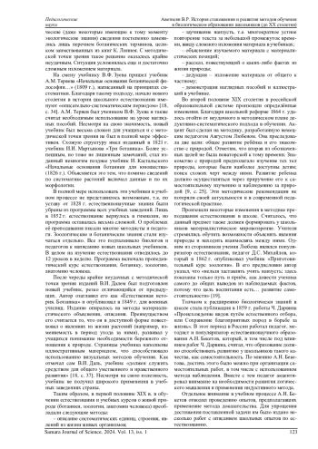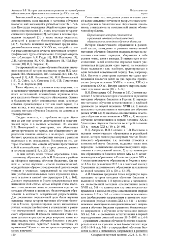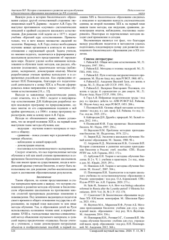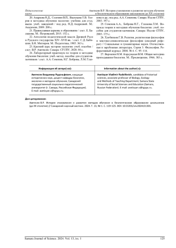 12. 	Андреева Н.Д., Малиновская Н.В., Соломин В.П. История становления и развития методики преподавания биологии в России: учеб. пособие. СПб.: Изд-во РГПУ им. А.И. Герцена, 2012. 172 с. EDN: QKUVRZ