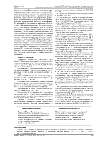 15. 	Лыкова И.А., Майер А.А. Систематизация традиций семейного воспитания: социально-педагогический классификатор // Science for Education Today. 2022. Т. 12, № 5. С. 200-224. DOI: 10.15293/2658-6762.2205.11 EDN: ELCNFI