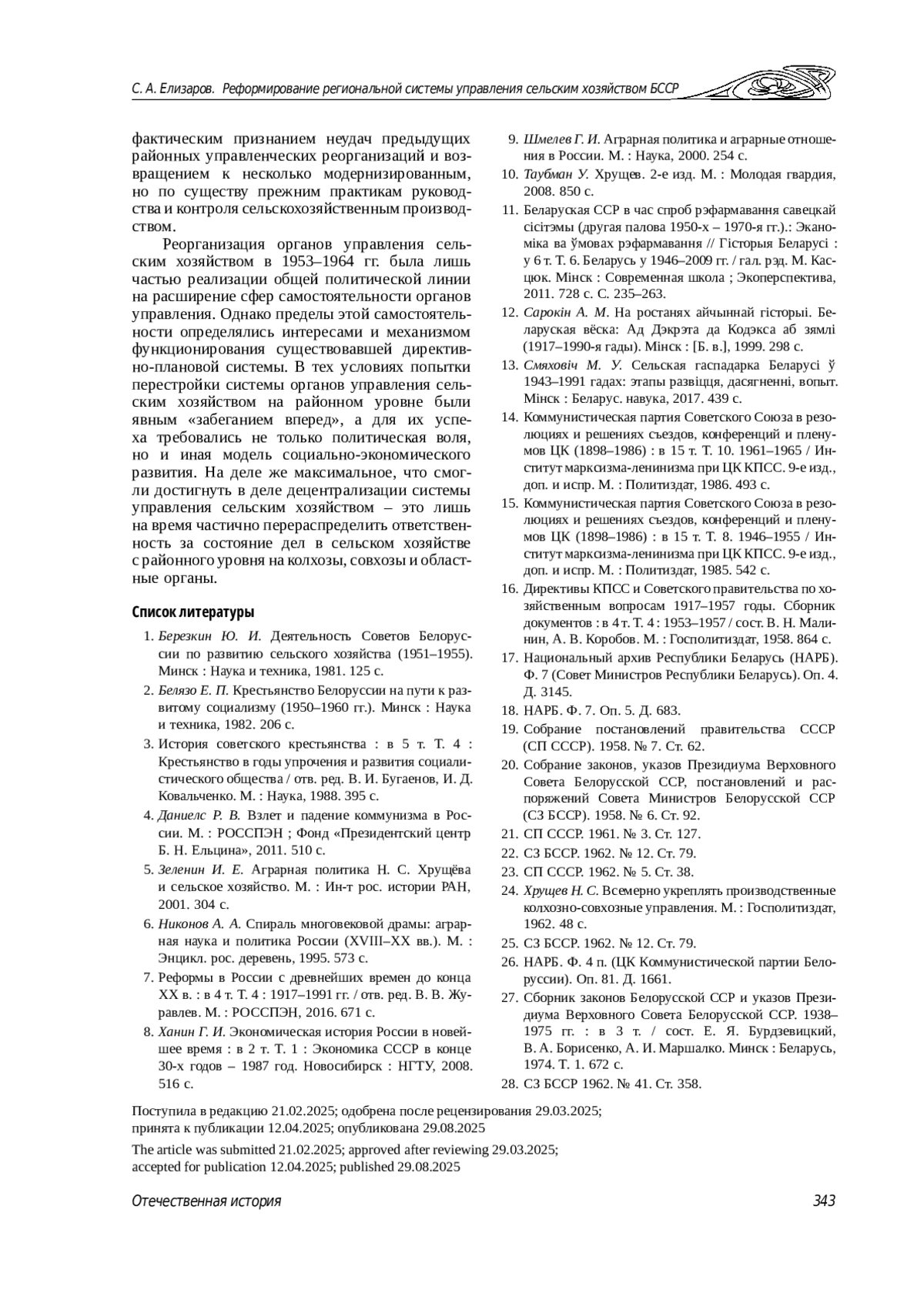 1. Березкин Ю. И. Деятельность Советов Белоруссии по развитию сельского хозяйства (1951-1955). Минск: Наука и техника, 1981. 125 с.