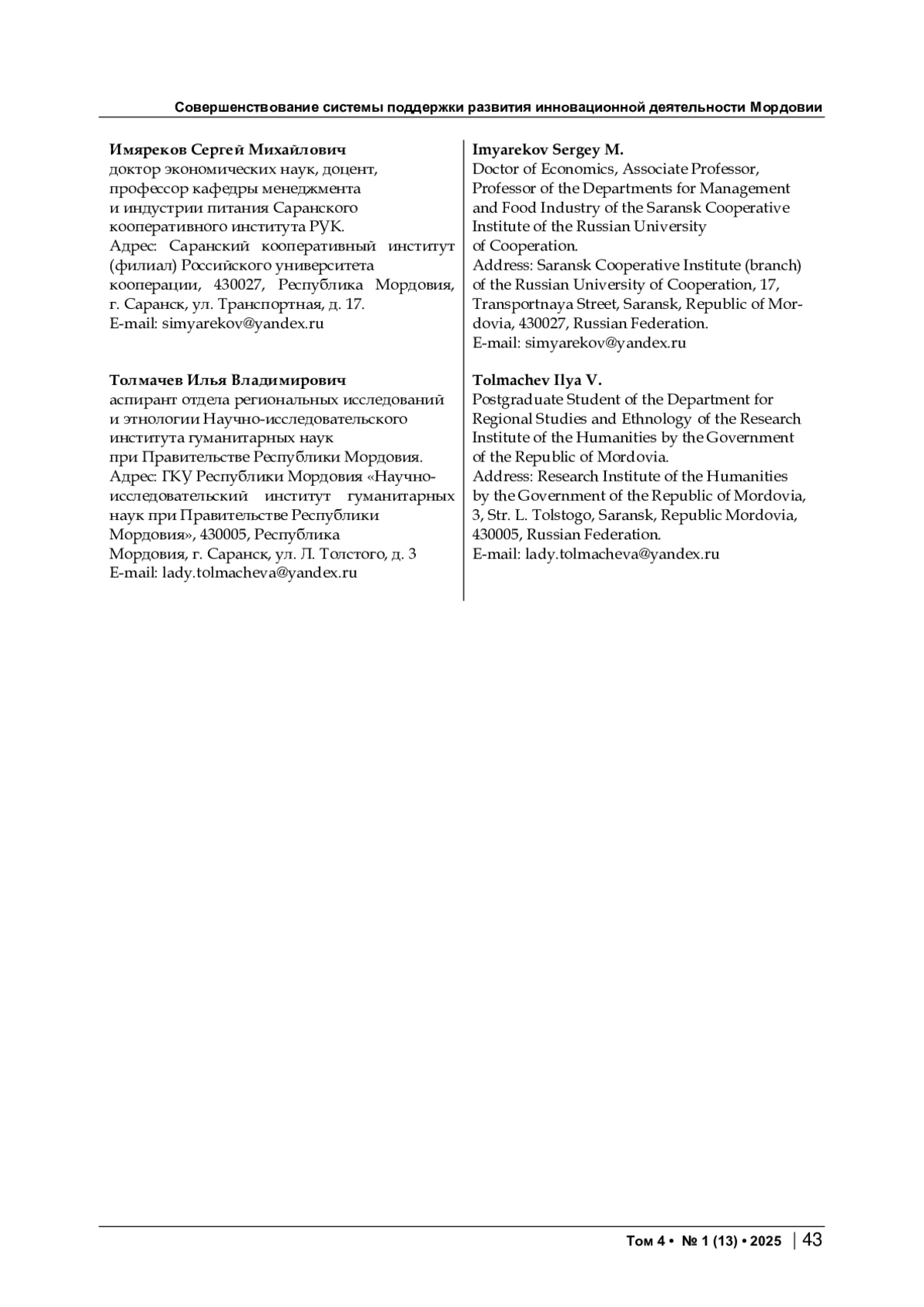 В статье отмечается, что Республика Мордовия по показателям инновационной деятельности в течение последних лет уверенно лидирует в Приволжском федеральном округе и Российской Федерации. Это диссонирует с общим проблемным состоянием пока еще депрессивного региона, но в то же время свидетельствует о наличии у него серьезного потенциала для роста и устойчивого развития. Курс на импортозамещение принципиально изменил и расширил направления создания и внедрения инноваций для отечественных разработчиков, стал исключительно привлекательным для представителей малого бизнеса. НИОКР в сфере малого предпринимательства характеризуется их высокой актуальностью и востребованностью, что определяется позиционированием малых предприятий и, соответственно, знанием проблем товарных и технологических рынков изнутри. Вместе с тем остается немало вопросов, требующих совершенствования системы поддержки разработки и внедрения инноваций в регионе, особенно в малом бизнесе. В статье обобщаются и анализируются основные результаты действующей региональной поддержки развития инновационной деятельности в малом бизнесе, формулируются и обосновываются конкретные предложения по ее совершенствованию.