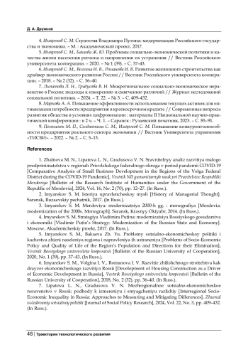 7. 	Липатова Л. Н., Градусова В. Н. Межрегиональное социально-экономическое неравенство в России: подходы к измерению и смягчению различий // Журнал исследований социальной политики. - 2024. - Т. 22. - № 3. - С. 409-432. EDN: TWMHGL
