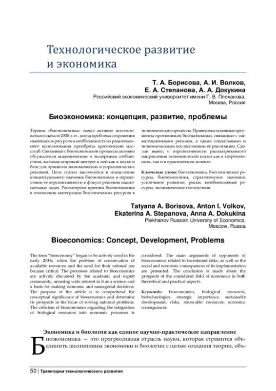 Термин «биоэкономика» начал активно использоваться в начале 2000-х гг., когда проблема сохранения имеющихся ресурсов и необходимость их рационального использования приобрела критический масштаб. Связанные с биоэкономикой процессы активно обсуждаются академическим и экспертным сообществом, вызывая широкий интерес к ней как к науке и базе для принятия экономических и управленческих решений. Цель статьи заключается в осмыслении концептуального значения биоэкономики и определении ее перспективности в фокусе решения национальных задач. Рассмотрена критика биоэкономики в отношении интеграции биологических ресурсов в экономические процессы. Приведены основные аргументы противников биоэкономики, связанные с инвестиционными рисками, а также социальными и экономическими последствиями ее реализации. Сделан вывод о перспективности рассматриваемого направления экономической науки как в теоретическом, так и в практическом аспекте.