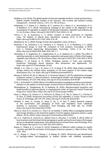 6. 	Тутова, Т. Н., & Несмелова, Л. А. (2022). Анализ мирового производства овощных культур. Вестник Ижевской государственной сельскохозяйственной академии, 4(72), 41-49. DOI: 10.48012/1817-5457-2022-4-41-49 EDN: WWIPZM