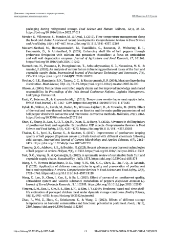 32. 	Wang, X., Luo, D., Chen, J., Cao, S., & Ba, L. (2025). Effect of carvacrol on postharvest quality, antioxidant system and volatile substance metabolism of peppers (Capsicum annuum L.). Journal of Stored Products Research, 111, 102583. DOI: 10.1016/j.jspr.2025.102583 EDN: MMNLTZ