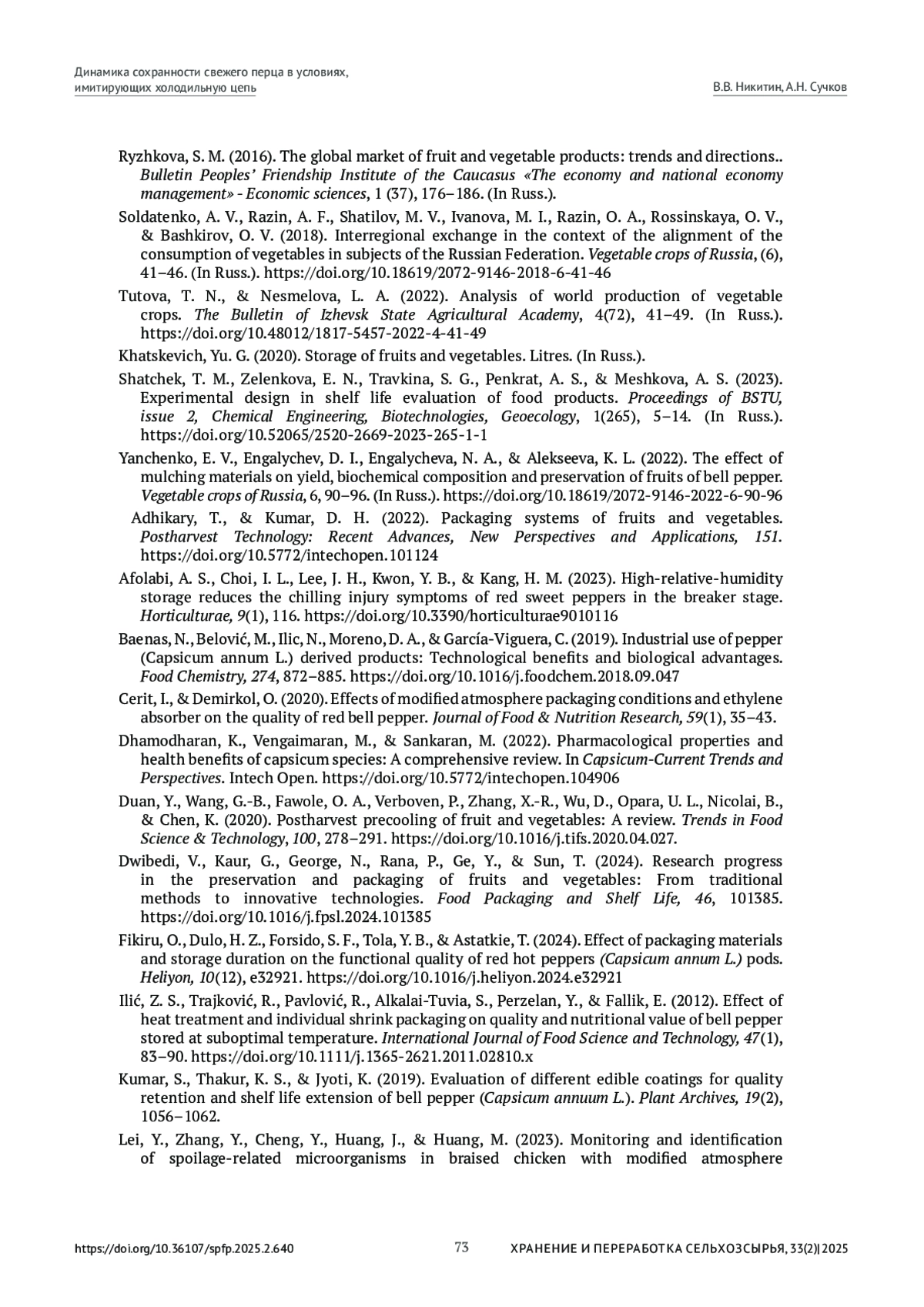 16. 	Fikiru, O., Dulo, H. Z., Forsido, S. F., Tola, Y. B., & Astatkie, T. (2024). Effect of packaging materials and storage duration on the functional quality of red hot peppers (Capsicum annum L.) pods. Heliyon, 10(12), e32921. DOI: 10.1016/j.heliyon.2024.e32921 EDN: PEWWFQ