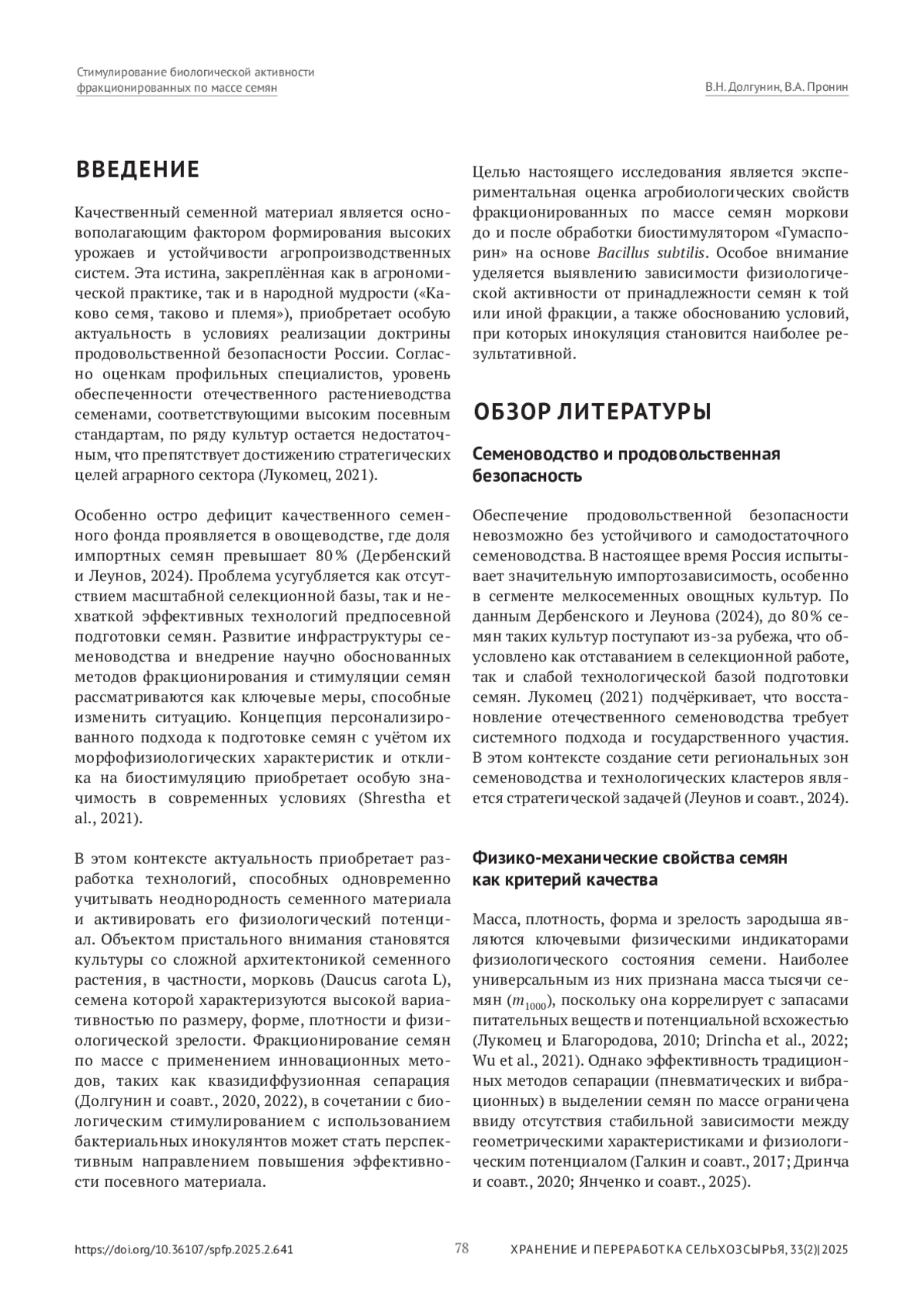 Качественный семенной материал является основополагающим фактором формирования высоких урожаев и устойчивости агропроизводственных систем. эта истина, закрепленная как в агрономической практике, так и в народной мудрости («Каково семя, таково и племя»), приобретает особую актуальность в условиях реализации доктрины продовольственной безопасности России. Согласно оценкам профильных специалистов, уровень обеспеченности отечественного растениеводства семенами, соответствующими высоким посевным стандартам, по ряду культур остается недостаточным, что препятствует достижению стратегических целей аграрного сектора (Лукомец, 2021).