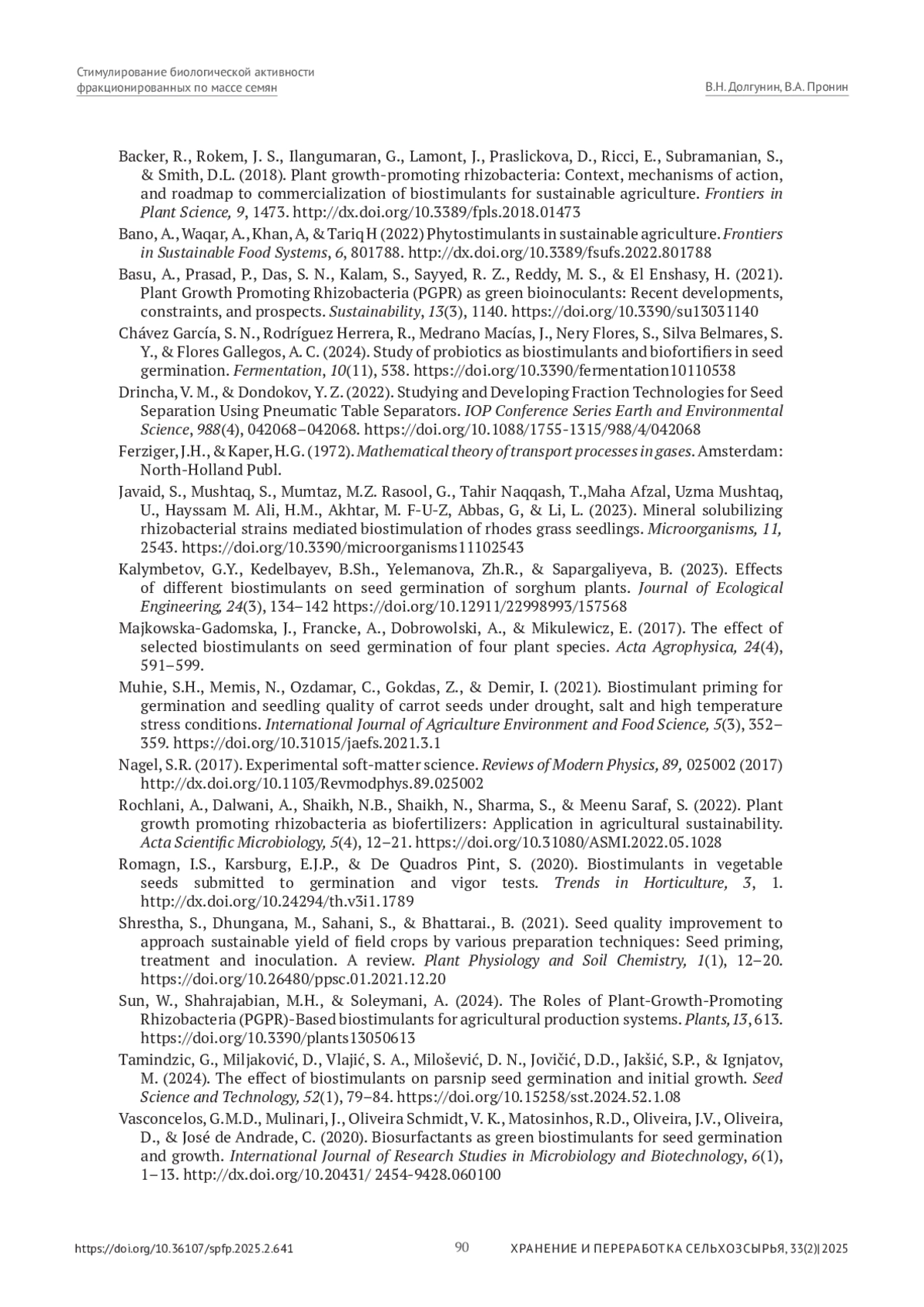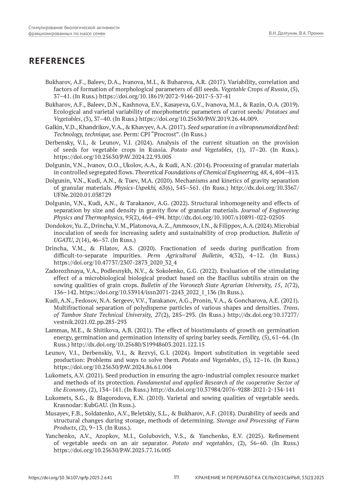 3. 	Галкин, В.Д., Хандриков, В.А., & Хавыев, А.А. (2017). Сепарация семян в вибропневмоожиженном слое: технология, техника, использование. Пермь: ИПЦ “ПрокростЪ”. EDN: YSAFGY