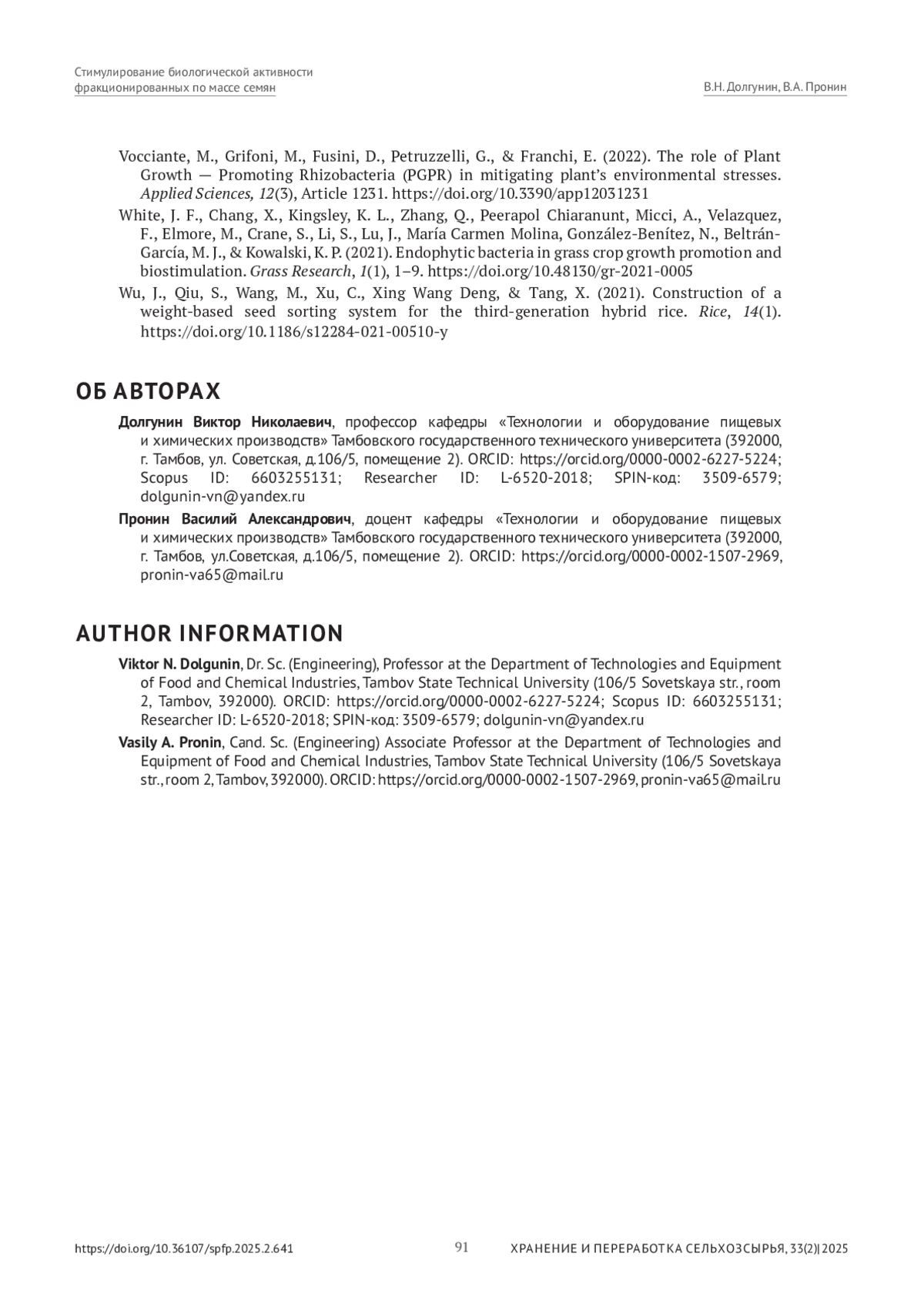 17. 	Янченко, А.В., Азопков, М.И., Голубович, В.С., & Янченко, Е.В. (2025). Доработка семян овощных культур на воздушном сепараторе. Картофель и овощи, (2), 56-60. 10.25630/ PAV.2025.77.16.005. DOI: 10.25630/PAV.2025.77.16.005 EDN: YMCITC