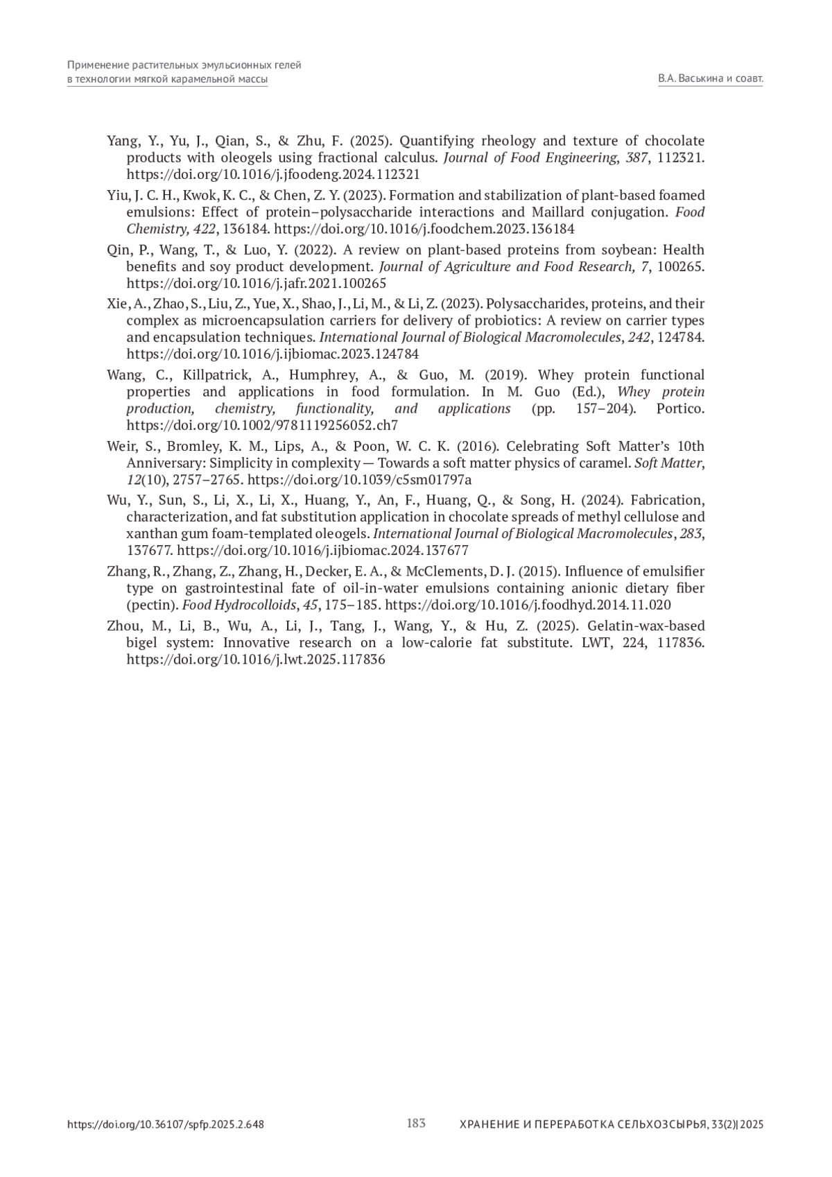 16. 	Tang, C.-H. (2017). Emulsifying properties of soy proteins: A critical review with emphasis on the role of conformational flexibility. Critical Reviews in Food Science and Nutrition, 57(12), 2636-2679. DOI: 10.1080/10408398.2015.1067594 EDN: KTKAPZ