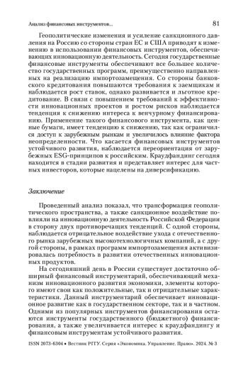 1. Валиахметова и др. 2022 - Валиахметова И.Р., Курилова А.А., Курилов К.Ю. Разработка механизма финансирования российских инноваций в условиях санкций ЕС и США // Вестник Волжского университета им. В.Н. Татищева. 2022. Т. 2. № 1. С. 191-198.