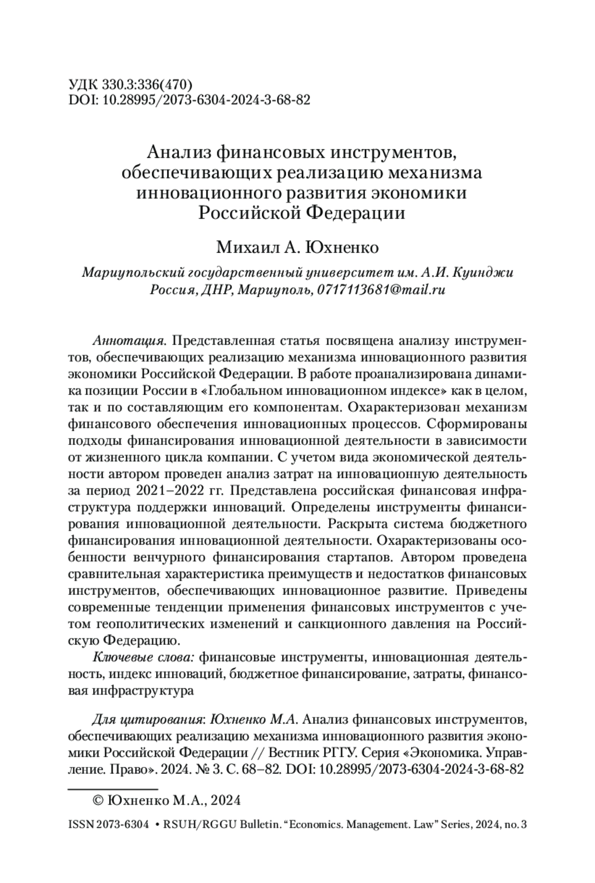 4. Шманев 2022 - Шманев С.В. Особенности и динамика финансирования инновационной деятельности в высокотехнологичных отраслях Российской Федерации // Известия Юго-Западного государственного университета. Серия «Экономика. Социология. Менеджмент». 2022. № 12 (2). С. 51-63.