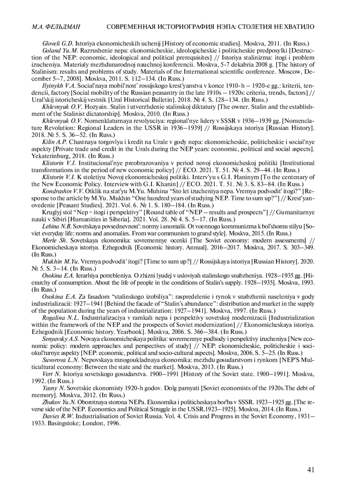 17. Кондрашин В.В. Отклик на статью М.Ю. Мухина “Сто лет изучения нэпа. Время подводить итоги?” // Крестьяноведение. 2021. Т. 6. № 1. С. 180-184. EDN: YDTPOB