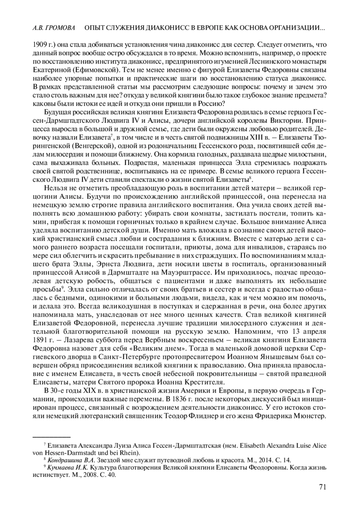 9. 	Кучмаева И.К. Культура благотворения Великой княгини Елисаветы Феодоровны. Когда жизнь истинствует. М., 2008.