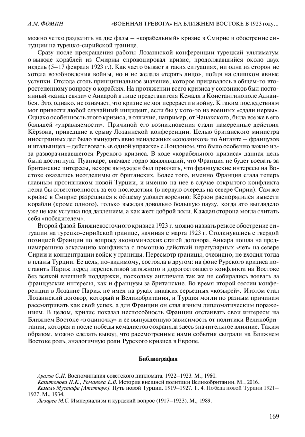9. 	Фомин А.М. Война с продолжением. Великобритания и Франция в борьбе за “Османское наследство”, 1918-1923. М., 2010. EDN: SUNTBD