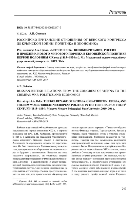 2. 	Орлов А.А. Союз Петербурга и Лондона. Российско-британские отношения в эпоху наполеоновских войн. М., 2005. EDN: SUPJHP