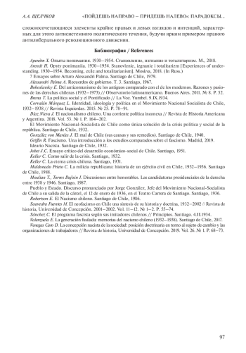 7. 	Corvalán Márquez L. Identidad, ideología y política en el Movimiento Nacional Socialista de Chile, 1932-1938 // Revista Izquierdas. 2015. № 25. Р. 78-91.