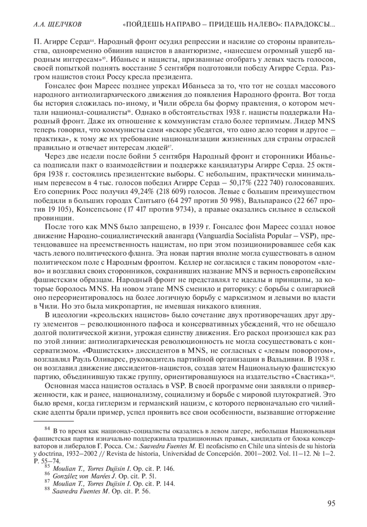 20. 	Saavedra Fuentes М. El neofacismo en Chile una síntesis de su historia y doctrina, 1932-2002 // Revista de historia, Universidad de Concepción. 2001-2002. Vol. 11-12. № 1-2. Р. 55-74.