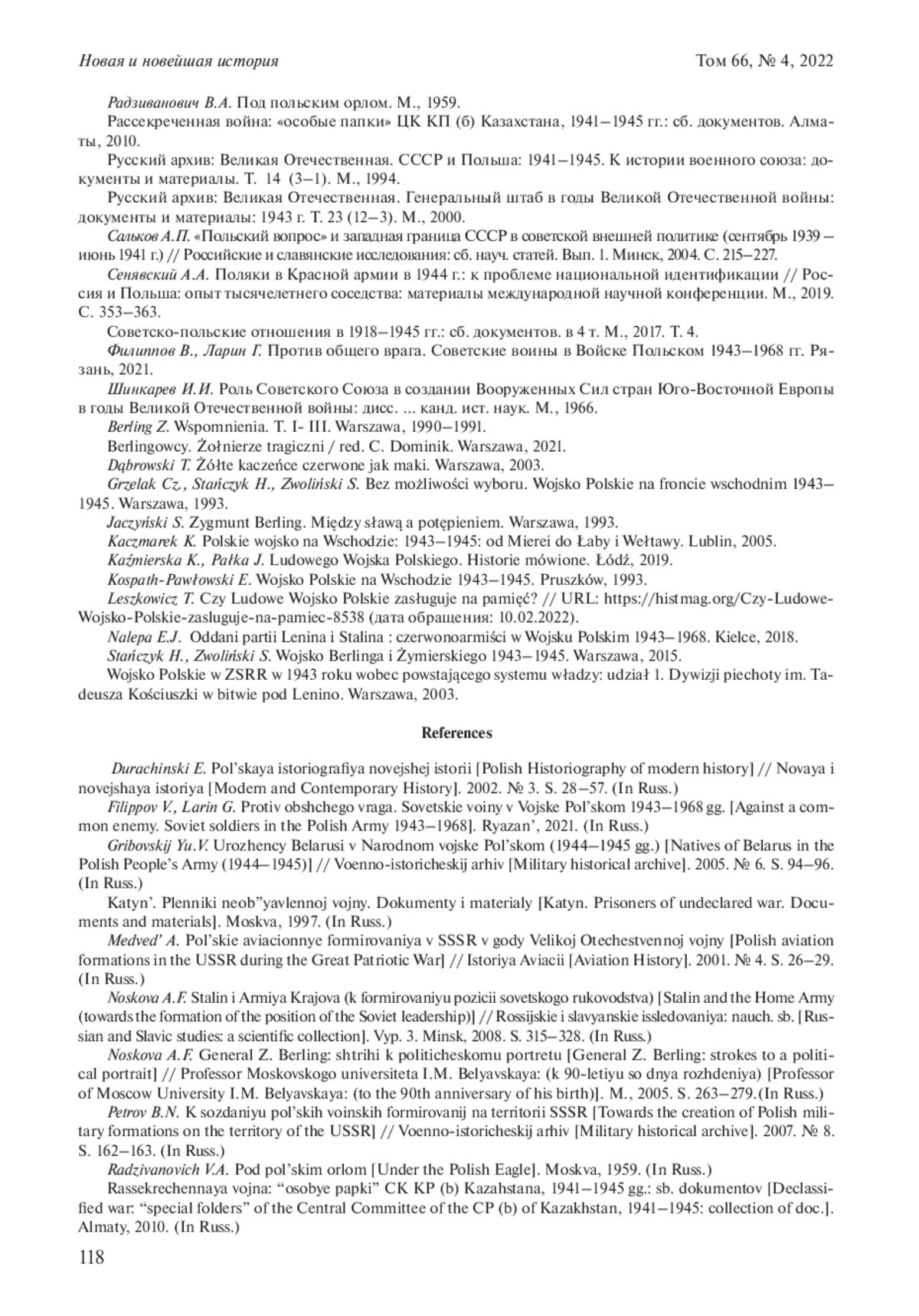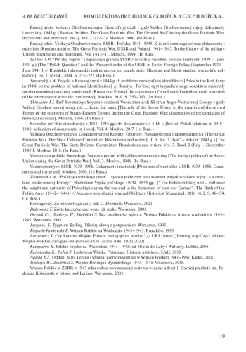 6. 	Зданович А.А. “Польская воинская часть… высоко поднимет вес и авторитет поляков в ходе войны и в становлении послевоенной Европы”. Рождение Войска польского (1942-1944 гг.) // Военно-исторический журнал. 2011. № 2. С. 48-54. EDN: NDLSLX