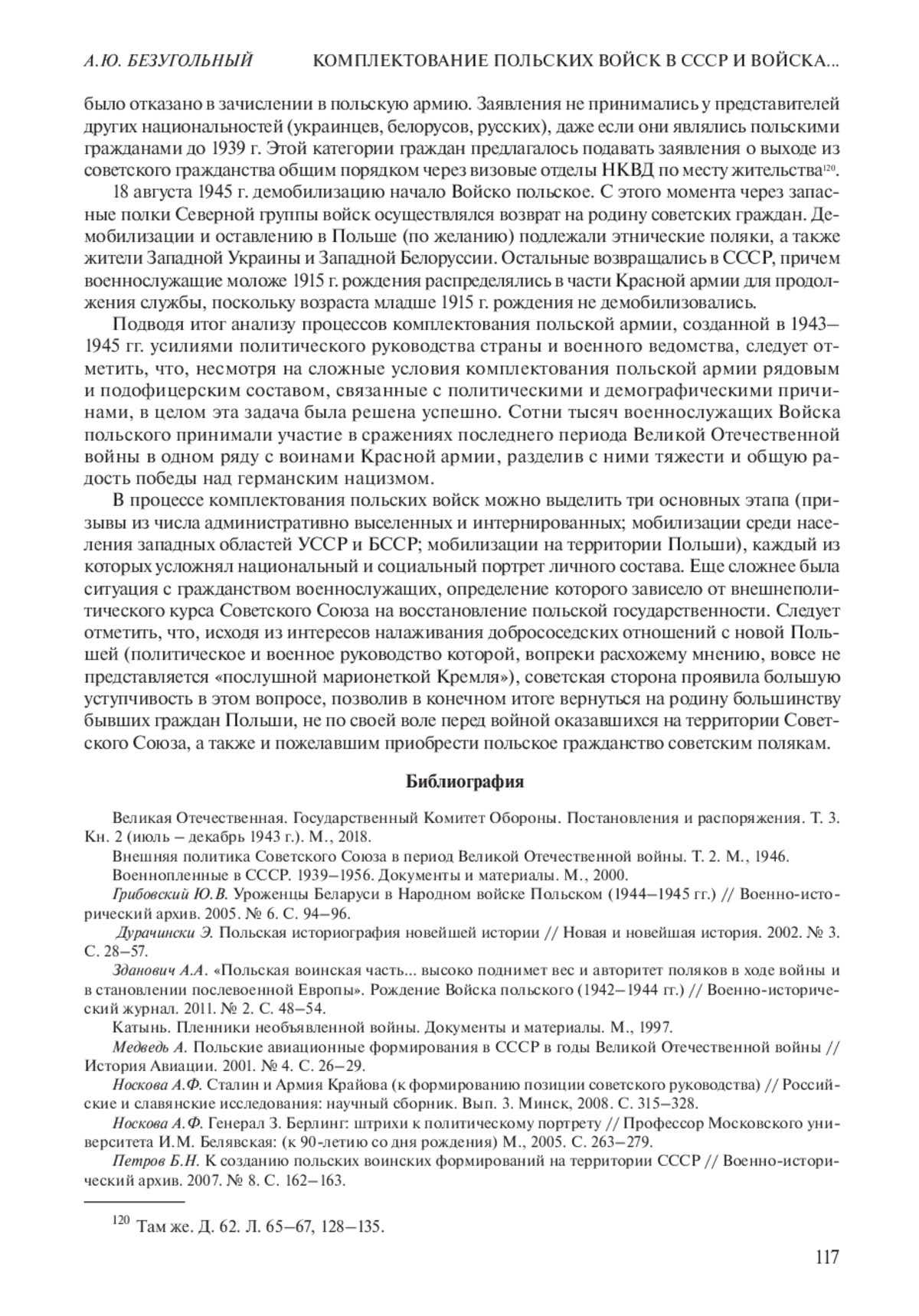 11. 	Петров Б.Н. К созданию польских воинских формирований на территории СССР // Военно-исторический архив. 2007. № 8. С. 162-163.