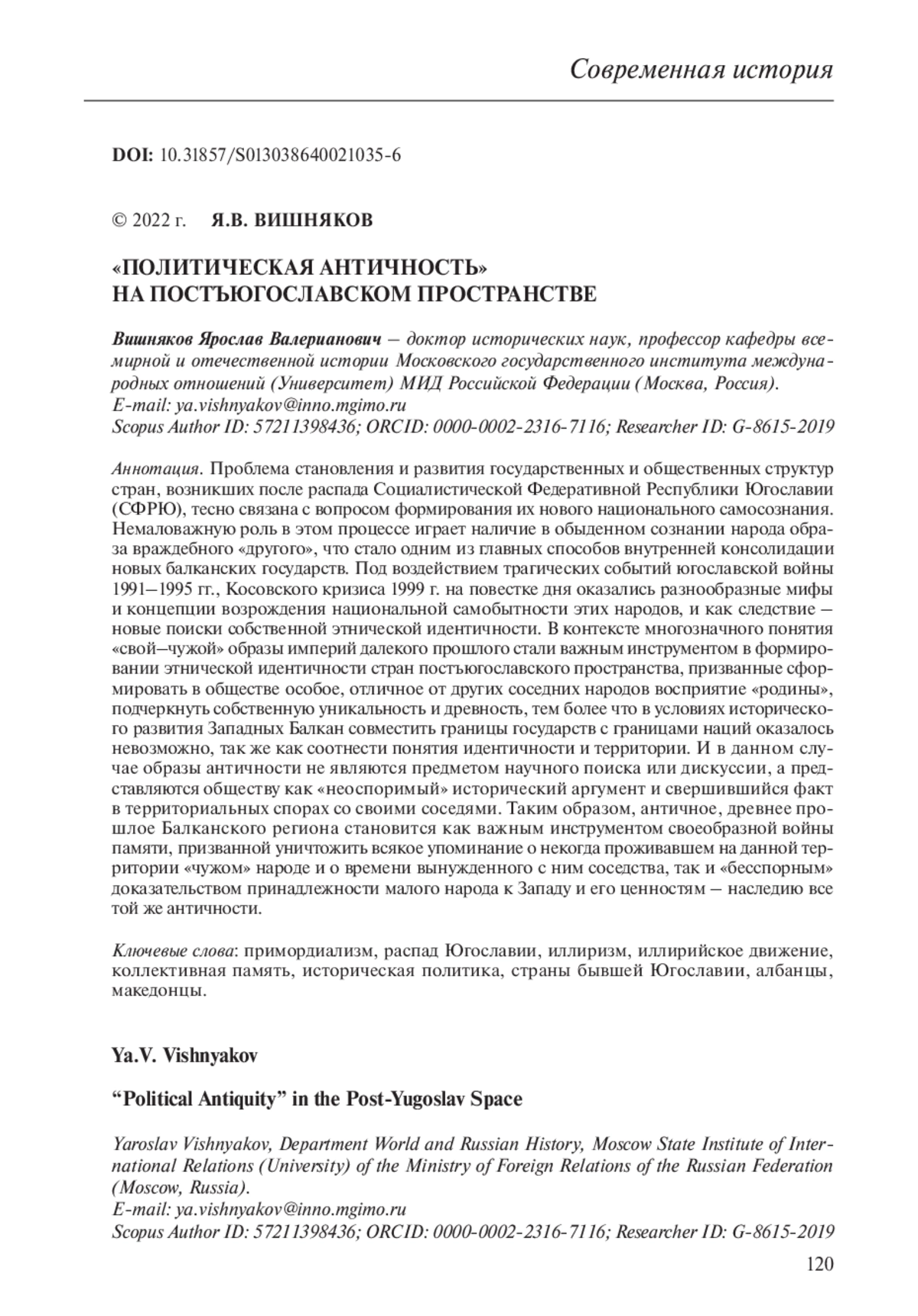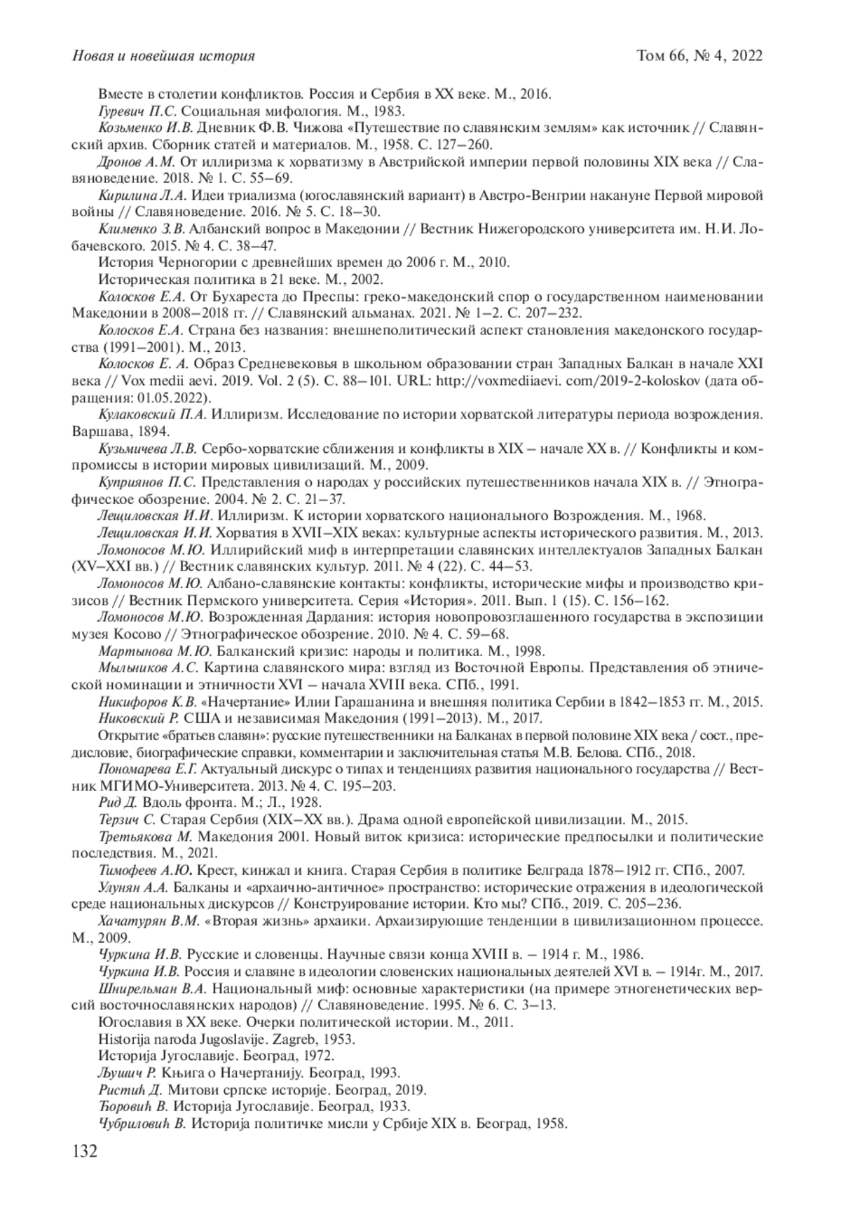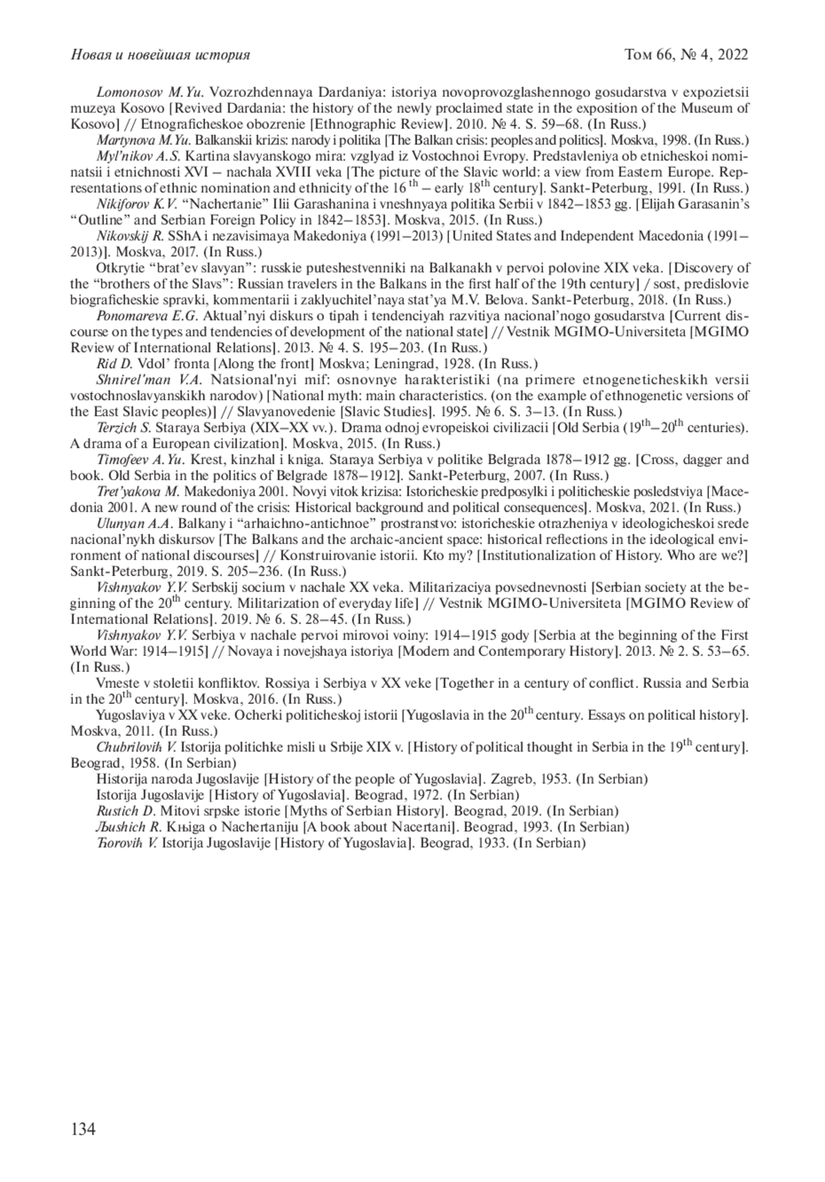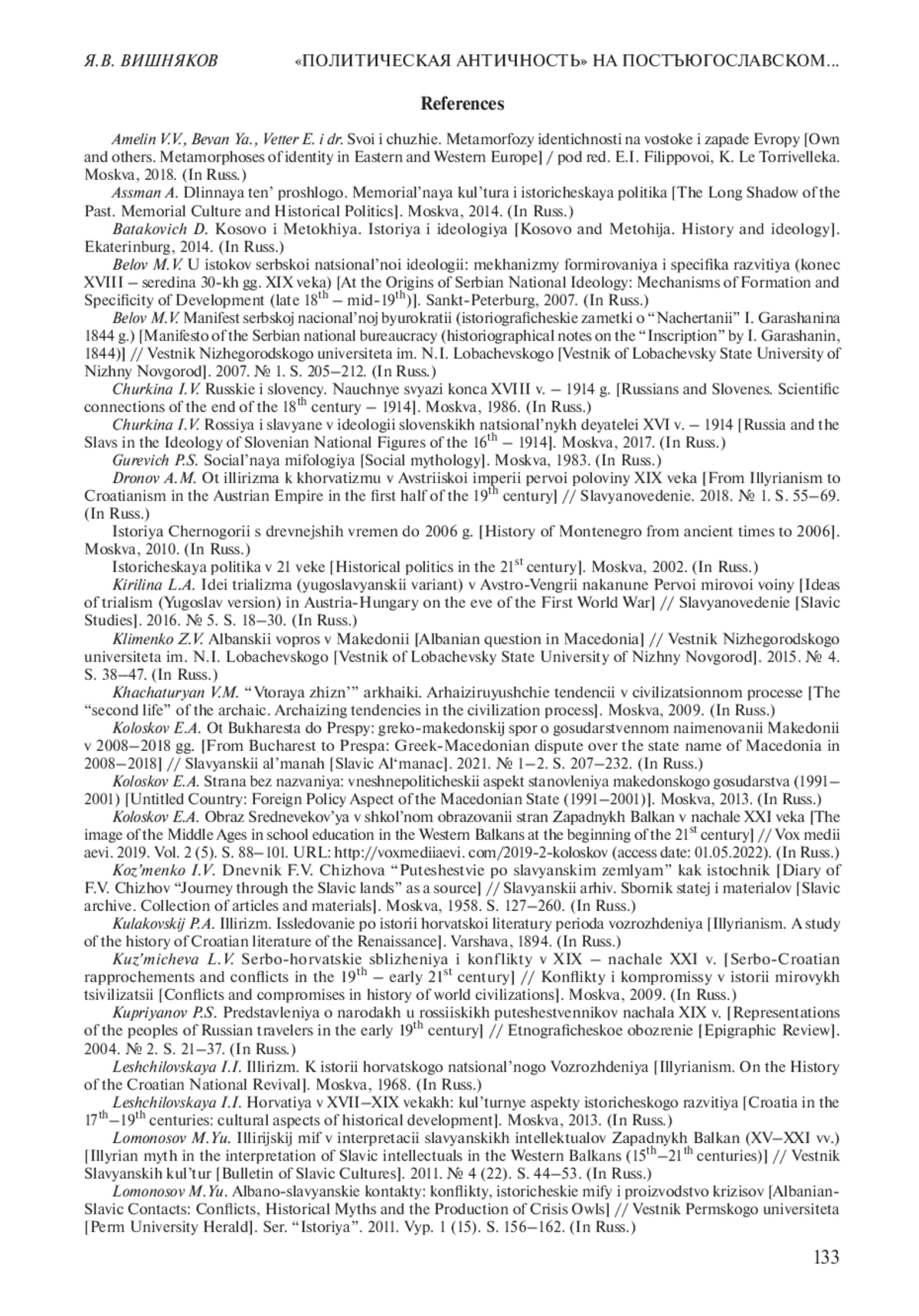 6. 	Вишняков Я.В. Сербский социум в начале ХХ века. Милитаризация повседневности // Вестник МГИМО-Университета. 2019. №6. С. 28-45. EDN: JVCVPG