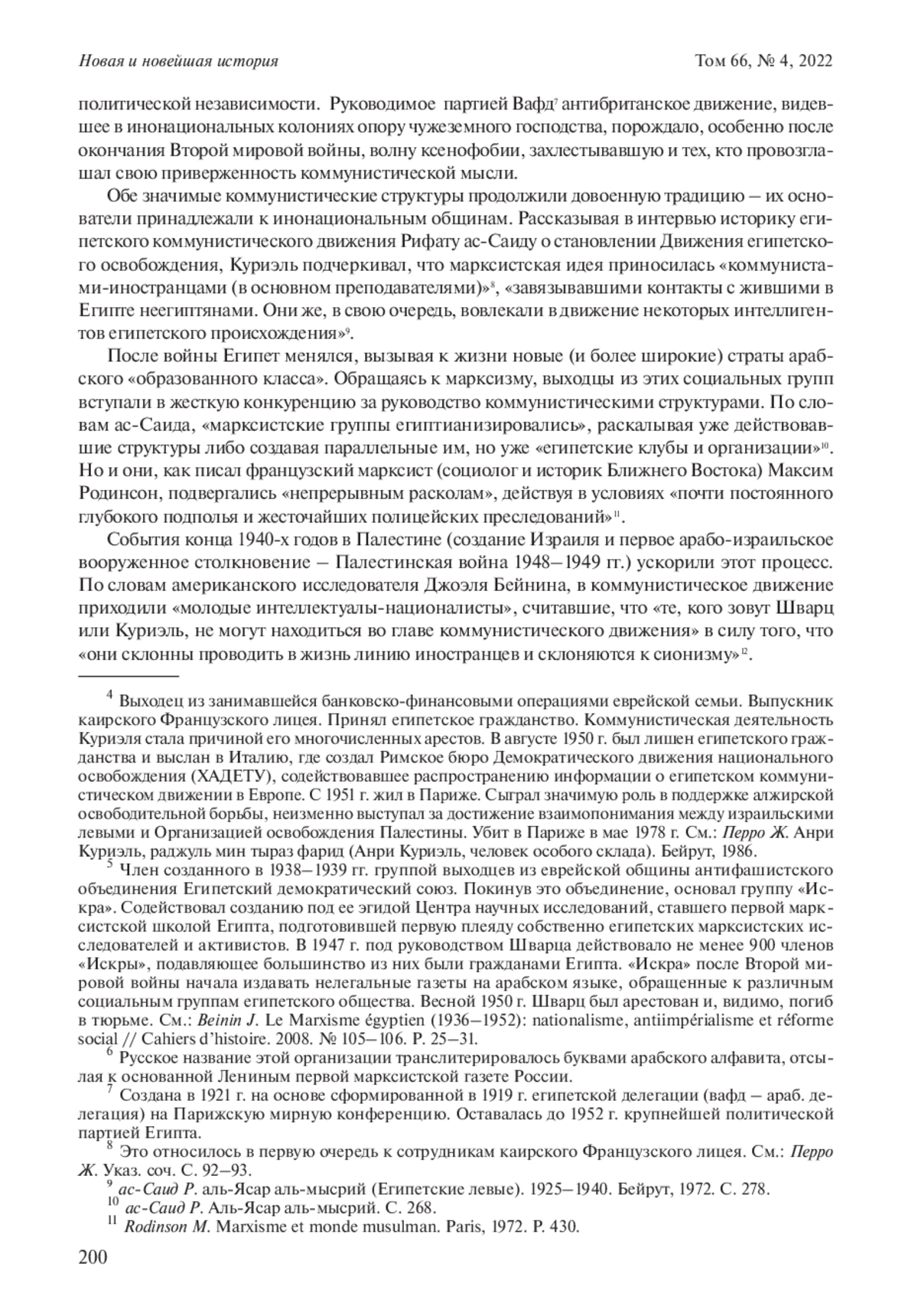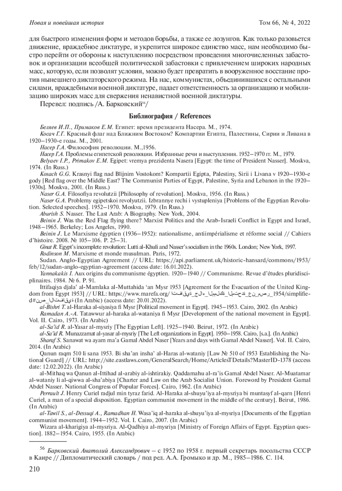 11. 	Beinin J. Le Marxisme égyptien (1936-1952): nationalisme, antiimpérialisme et réforme social // Cahiers d’histoire. 2008. № 105-106. P. 25-31.