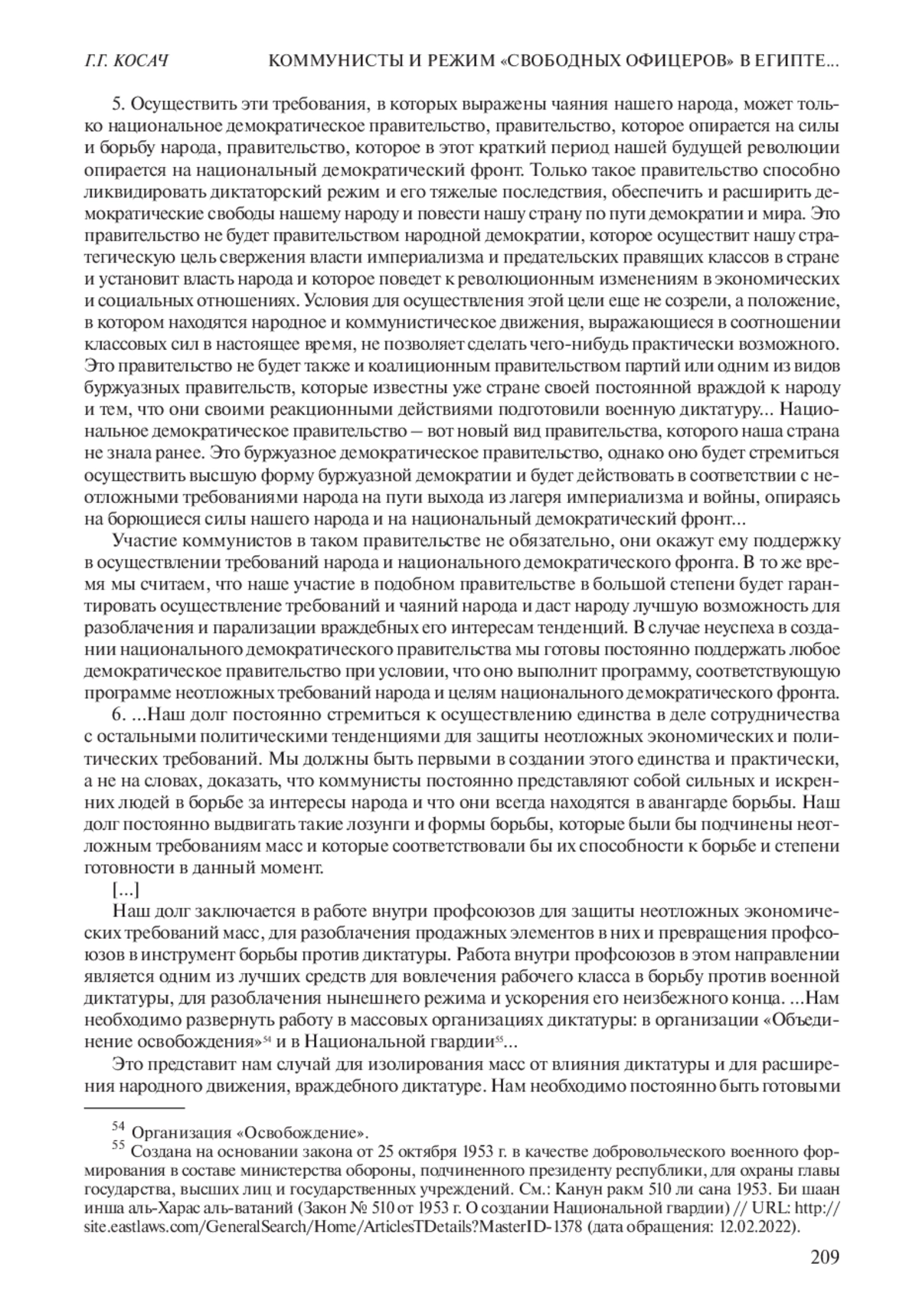 6. 	Kosach G.G. Krasnyi flag nad Blijnim Vostokom? Kompartii Egipta, Palestiny, Sirii i Livana v 1920-1930-e gody [Red flag over the Middle East? The Communist Parties of Egypt, Palestine, Syria and Lebanon in the 1920-1930s]. Moskva, 2001. (In Russ.).