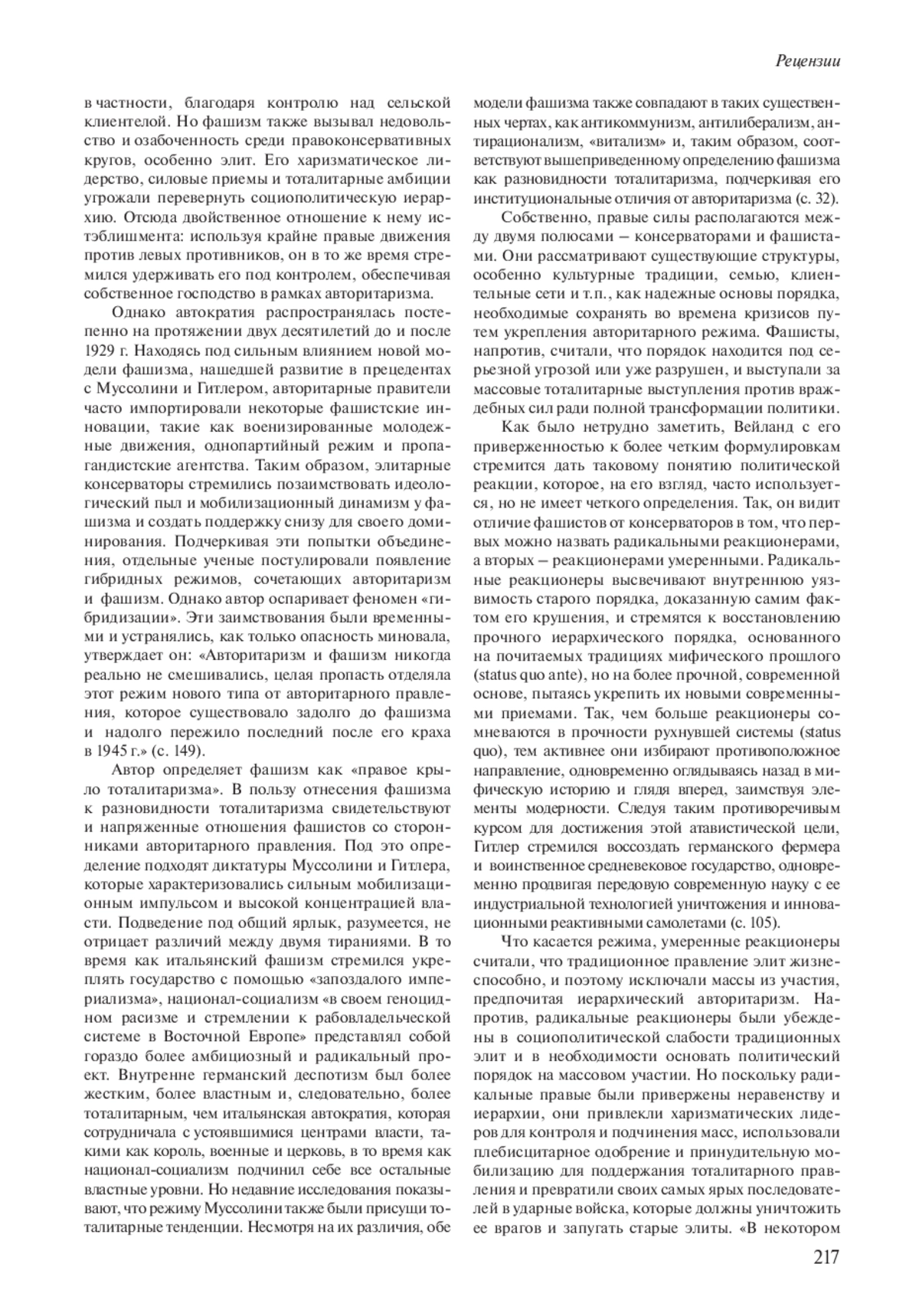 Активизация и электоральные достижения праворадикальных партий и движений в последние десятилетия являются транснациональным политическим феноменом, вызывающим озабоченность исследователей либерально-демократического направления. Отсюда проистекает интерес к межвоенному периоду 1920–1930-х годов, отмеченному наступлением фашизма и распространением авторитаризма, существенно потеснивших доселе успешно развивавшийся либерально-демократический тренд