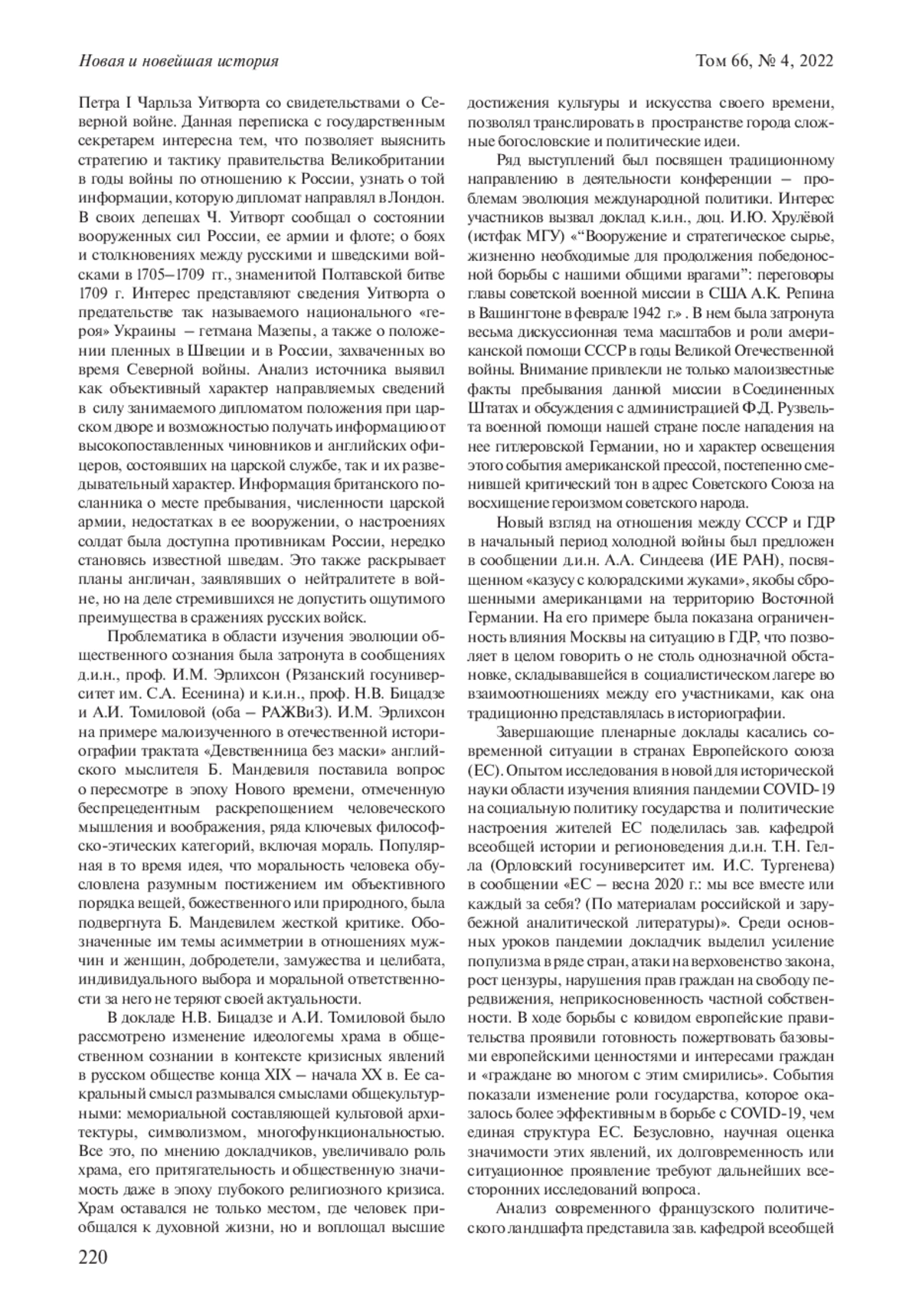 Статья посвящена современным тенденциям в изучении истории российскоамериканских отношений с конца XVIII в. до начала XXI в. Автор видит свою задачу в том, чтобы представить основные монографические исследования по данной проблематике, обратить внимание на многообразие жанров и теоретико-методологических подходов, получивших развитие в российской и американской историографии, а также обозначить перспективы изучения и преподавания истории двусторонних отношений. Его внимание сосредоточено на характеристике различных способов вопрошания исторического прошлого, поскольку в современной исторической науке от этого, а не только от введения в научный оборот ранее не использованных архивных источников, зависит получение новых знаний. По мнению автора, в многообразии вопросов, адресованных прошлому, американские историки преуспели в большей степени, чем их российские коллеги по цеху, несмотря на общие достижения и отдельные новаторские работы последних. Поэтому так важен откровенный разговор между учеными двух стран и продолжение работы в рамках совместных проектов и коллективных монографий, где можно было бы обобщить достижения национальных историографических школ не только на уровне монографической, но и статейной литературы и наметить перспективы дальнейших исследований. Данная статья может и должна рассматриваться как приглашение к такому разговору