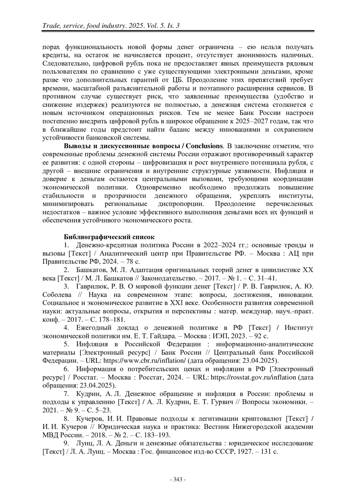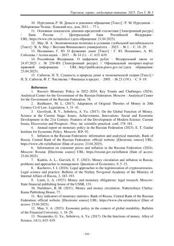 7. Кудрин, А. Л. Денежное обращение и инфляция в России: проблемы и подходы к управлению [Текст] / А. Л. Кудрин, Е. Т. Гурвич // Вопросы экономики. – 2021. – № 9. – С. 5–23.