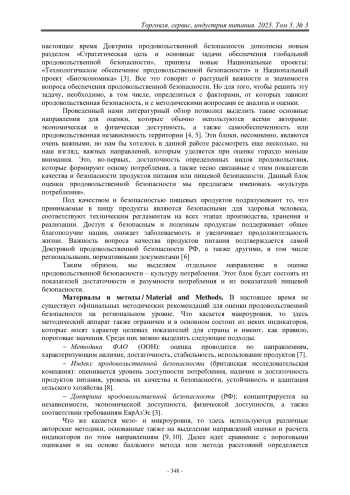 Тематика оценки продовольственной безопасности становится все более актуальной. Российскими исследователями изучается сущность продовольственной безопасности, ее составляющие, методики оценки [1, 2].