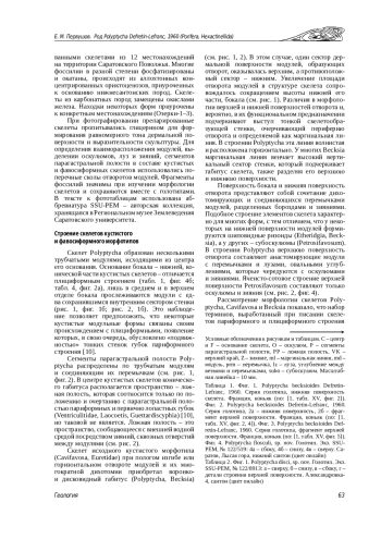 В верхнемеловых отложениях Поволжья впервые установлены губки Polyptycha. Скелет этих настоящих колоний характеризуется кустистым морфотипом, который осложнен анастомозом исходных модулей при их отвороте. Систематическое положение рода дискуссионно. Это обусловлено неполнотой представлений о морфологии разнообразных скелетов позднемеловых гексактинеллид и, соответственно, отсутствием кондиционных критериев таксонов уровня «семейство» и «род».