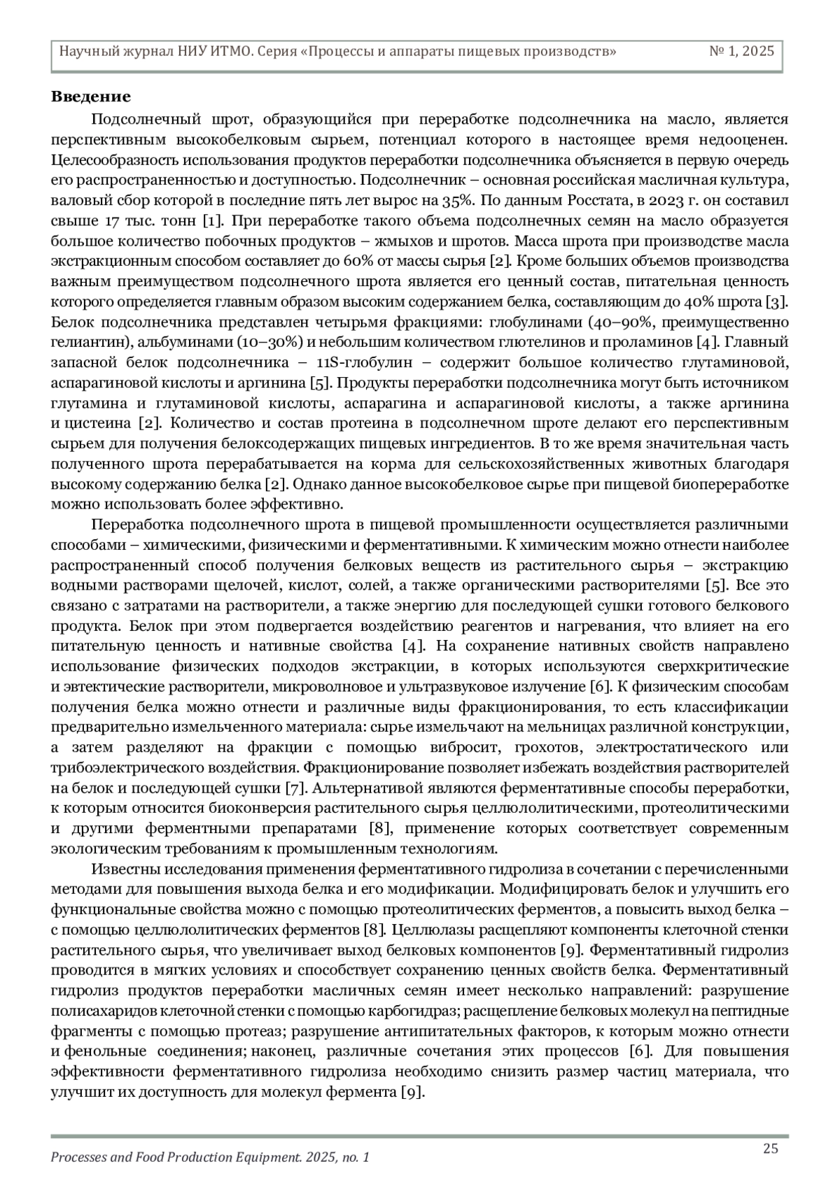 8. Дегтярев И.А., Фоменко И.А., Мижева А.А., Серба Е.М., Машенцева Н.Г. Белковые препараты из отходов переработки рапса: обзор современного состояния и перспектив развития существующих технологий // Пищевые системы. 2023. Т. 6. № 2. С. 159-170. DOI: 10.21323/2618-9771-2023-6-2-159-170