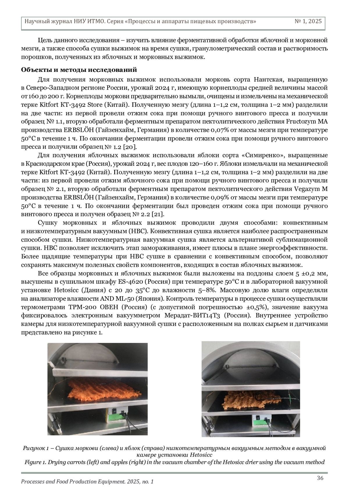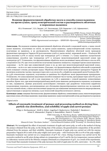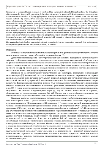 17. 	Яшонков А.А., Курдогло М.Э. Исследование влияния предварительного порообразования на кинетику процесса сушки при получении снеков из моркови // Ползунковый вестник. 2018. № 4. С. 64-67. DOI: 10.25712/ASTU.2072-8921.2018.04.013